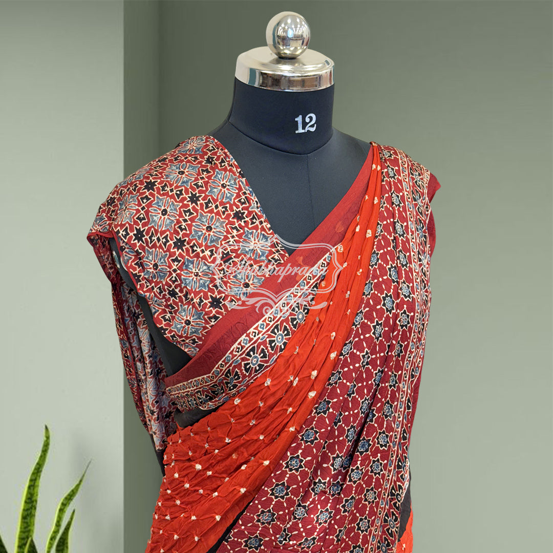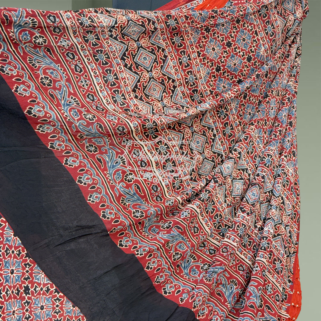 Handloom Pure Bandini Ajrakh Modal Silk Saree