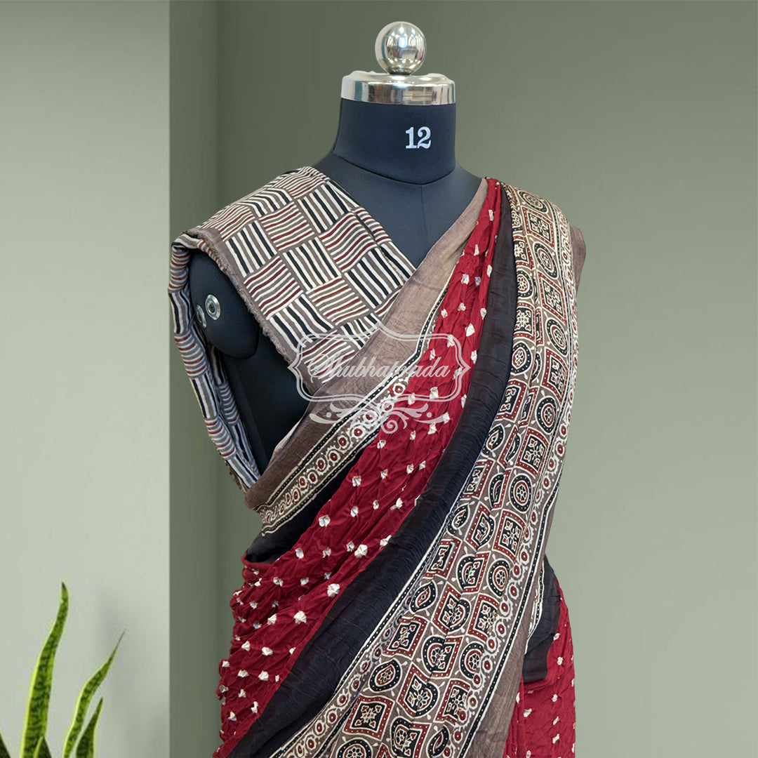 Handloom Pure Bandini Ajrakh Modal Silk Saree