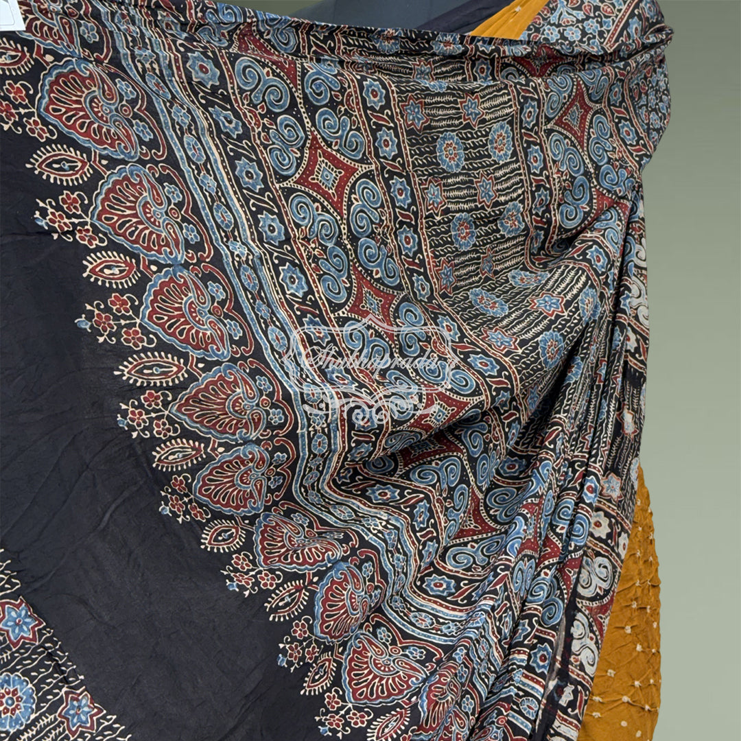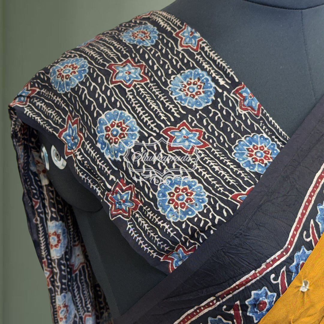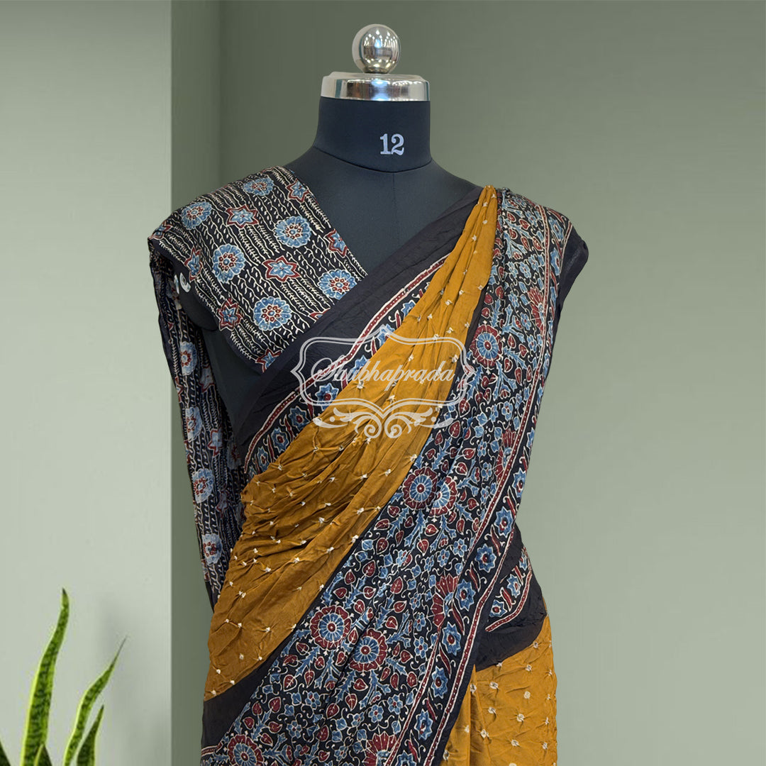 Handloom Pure Bandini Ajrakh Modal Silk Saree