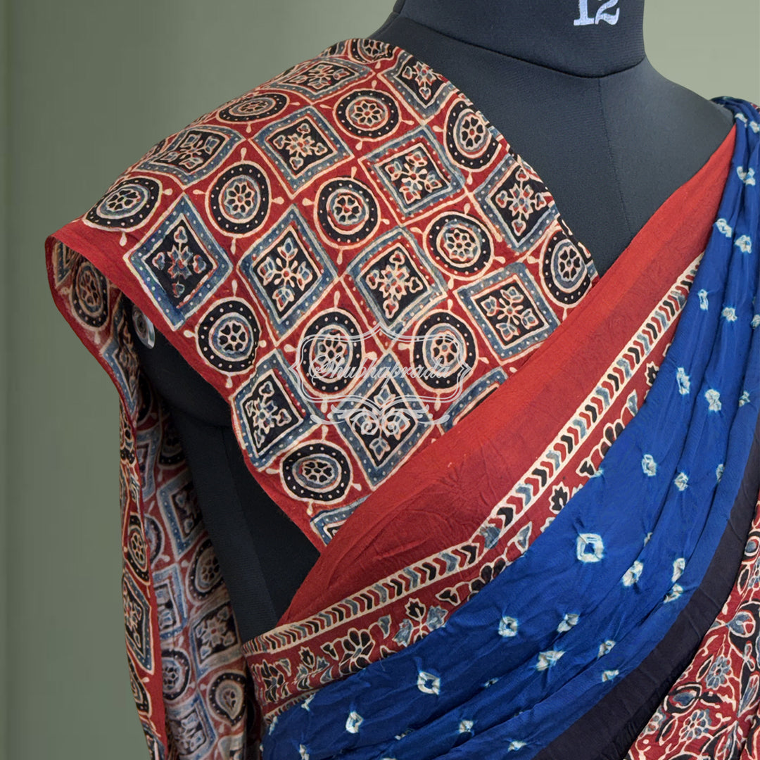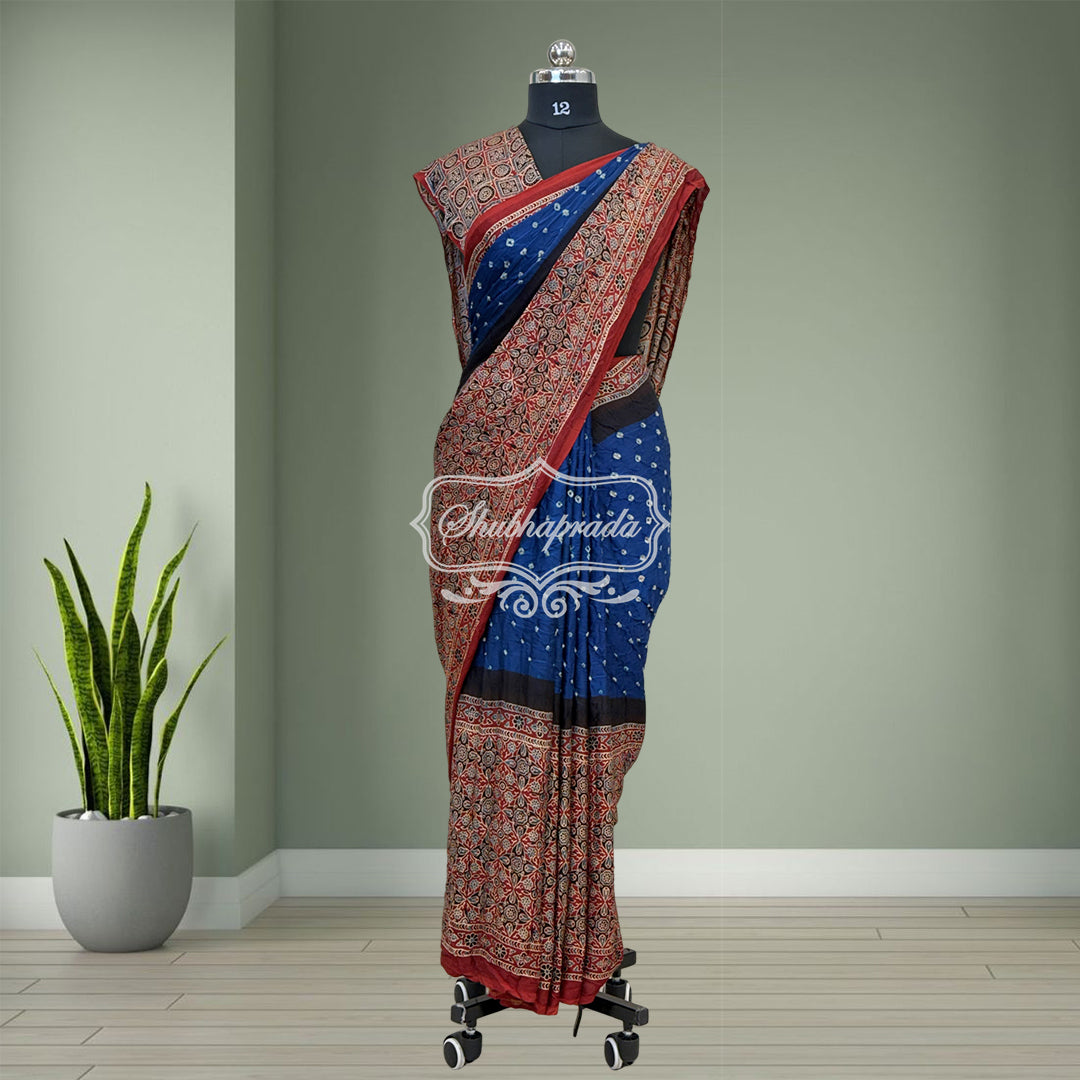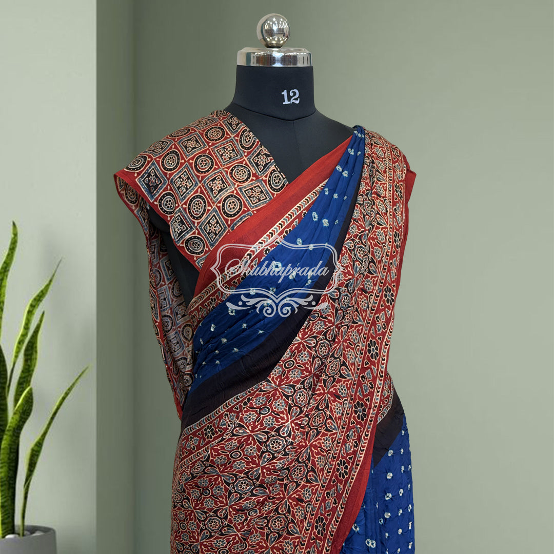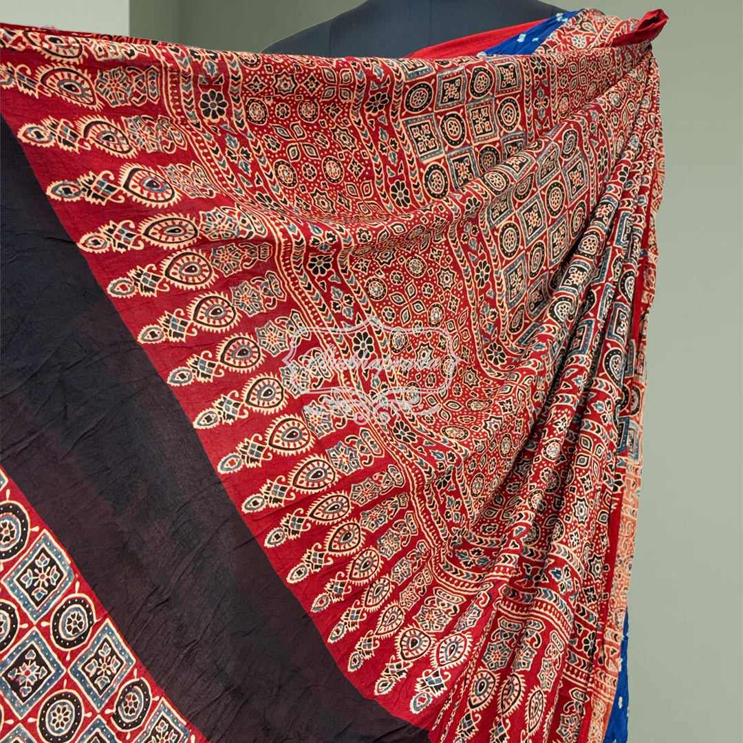 Handloom Pure Bandini Ajrakh Modal Silk Saree