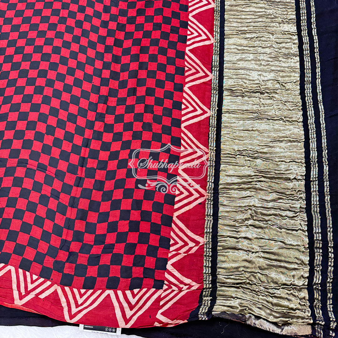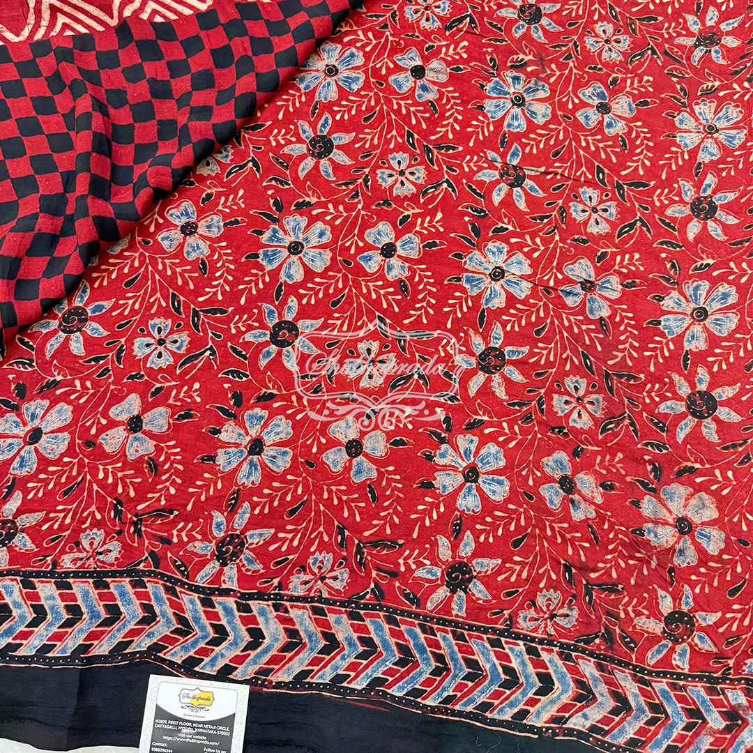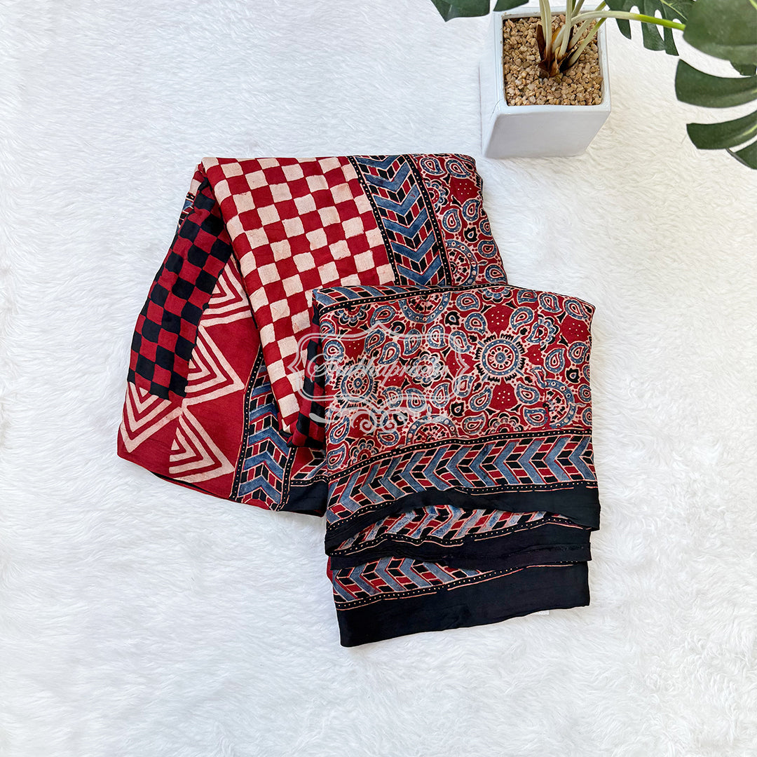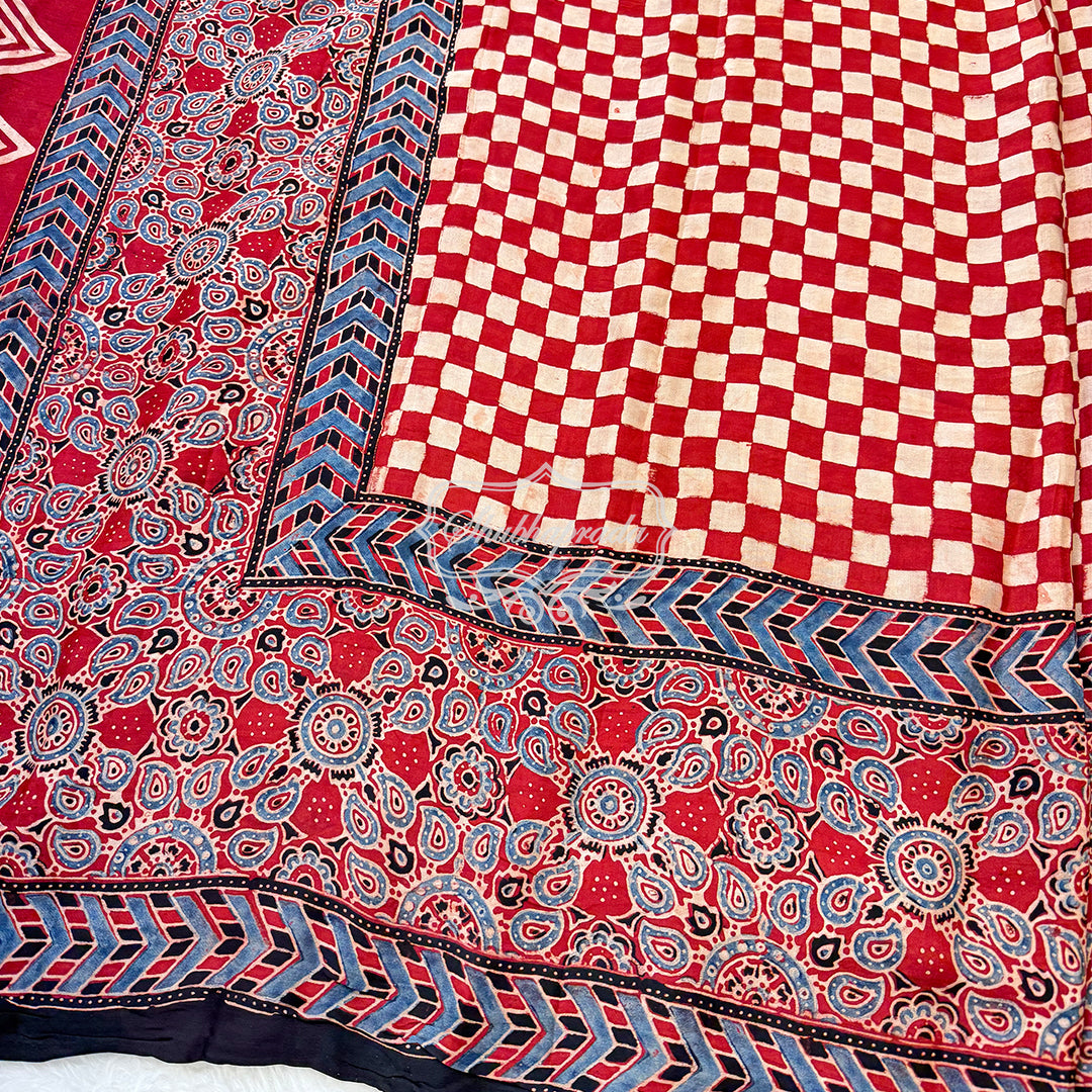 Handloom Pure Ajrakh Geometric Print Modal Silk Saree