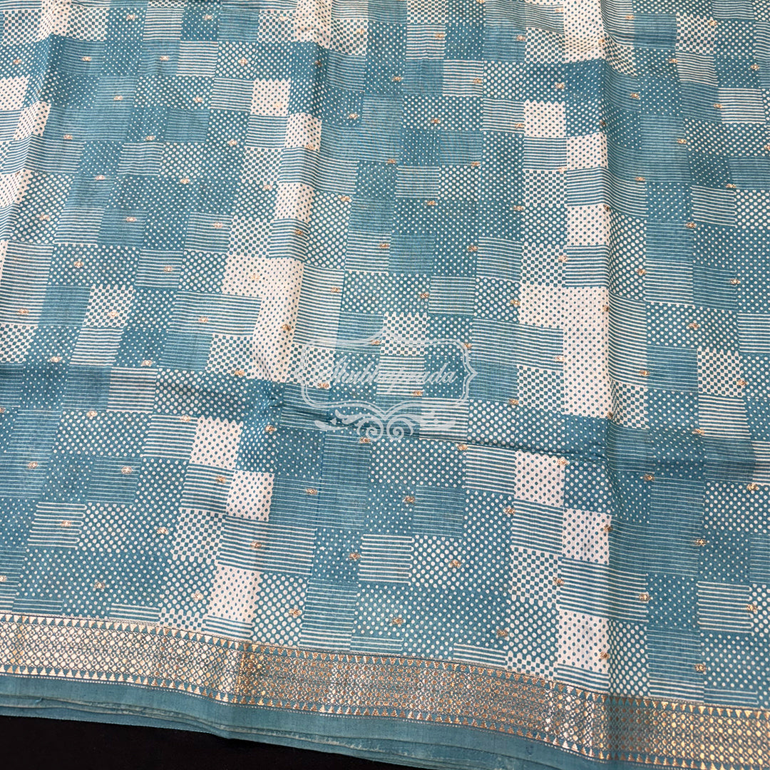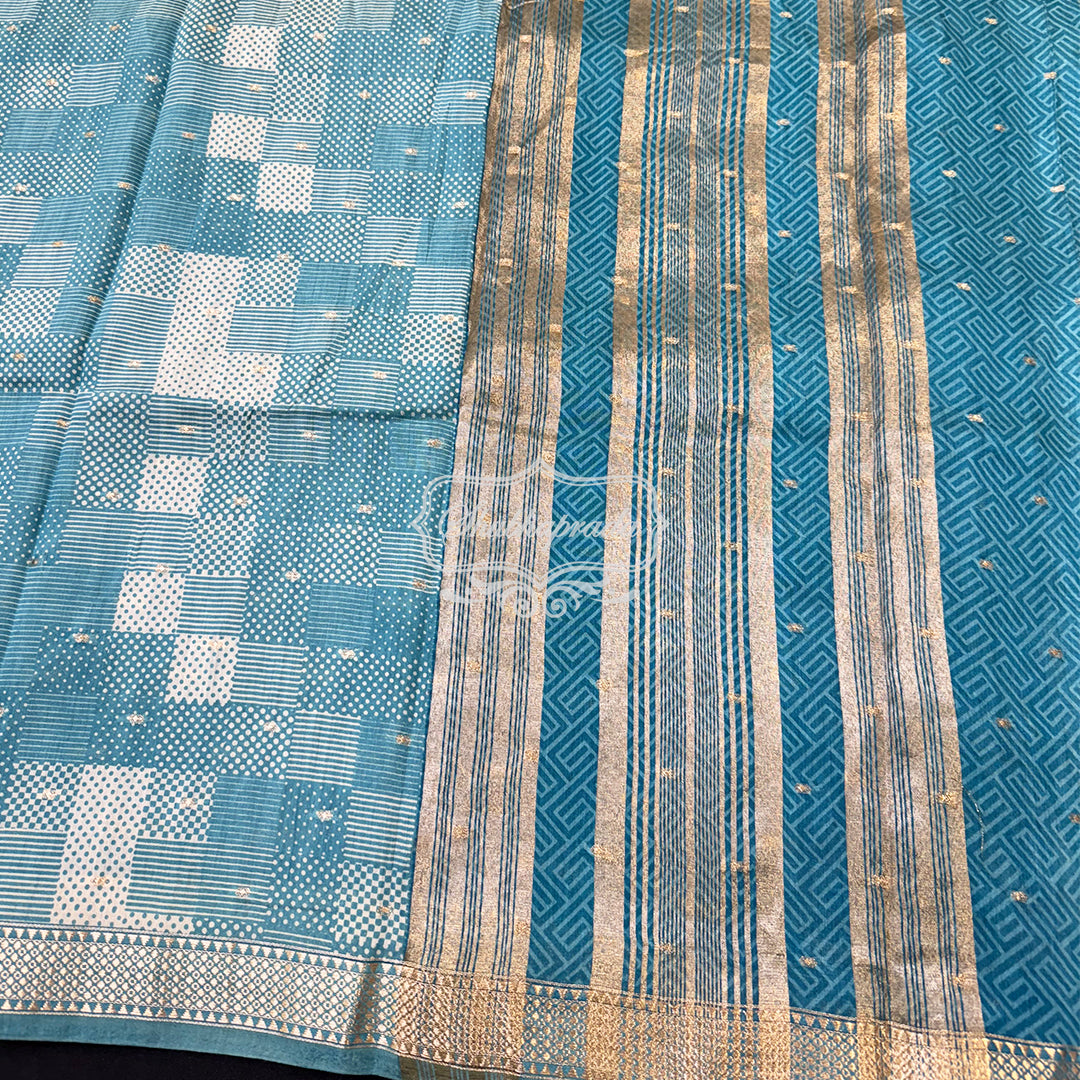 - Work : Digital Print with Golden Thread all over the body and Golden Weave Zari