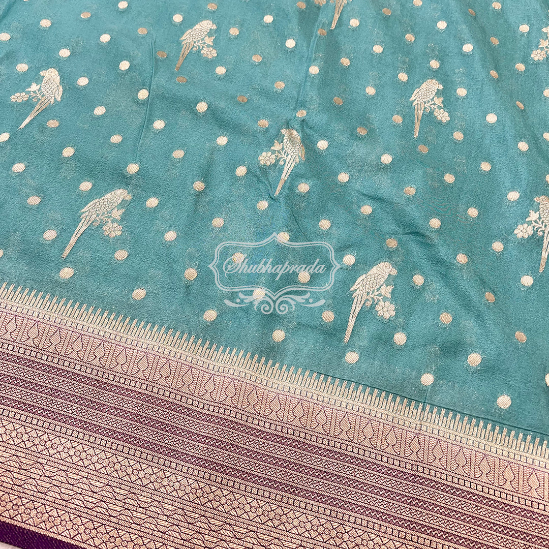Banarasi Georgette Saree with Golden Weave Butta and Parrot