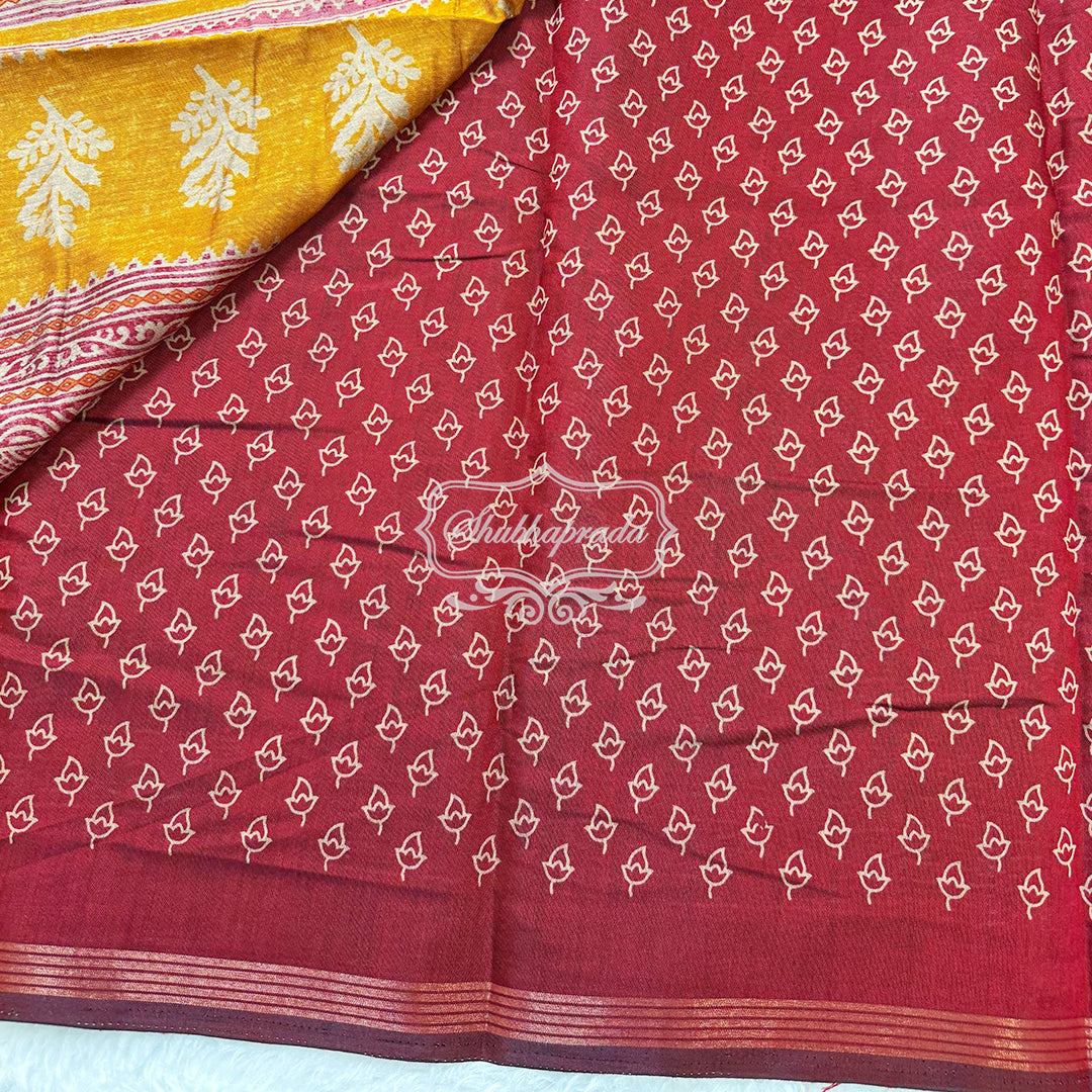 - Work : Traditional Mango Desing Print with Golden Weave Samll Border