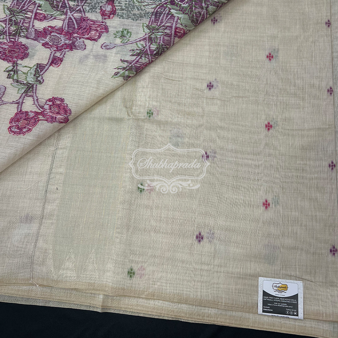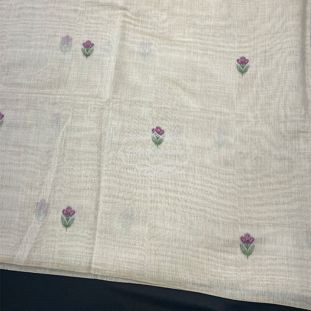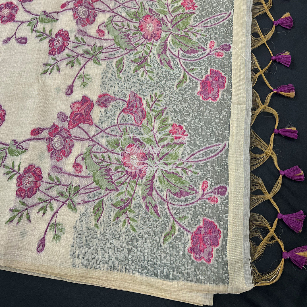 - Work : Digital Floral Print with Small Golden Weave Zari