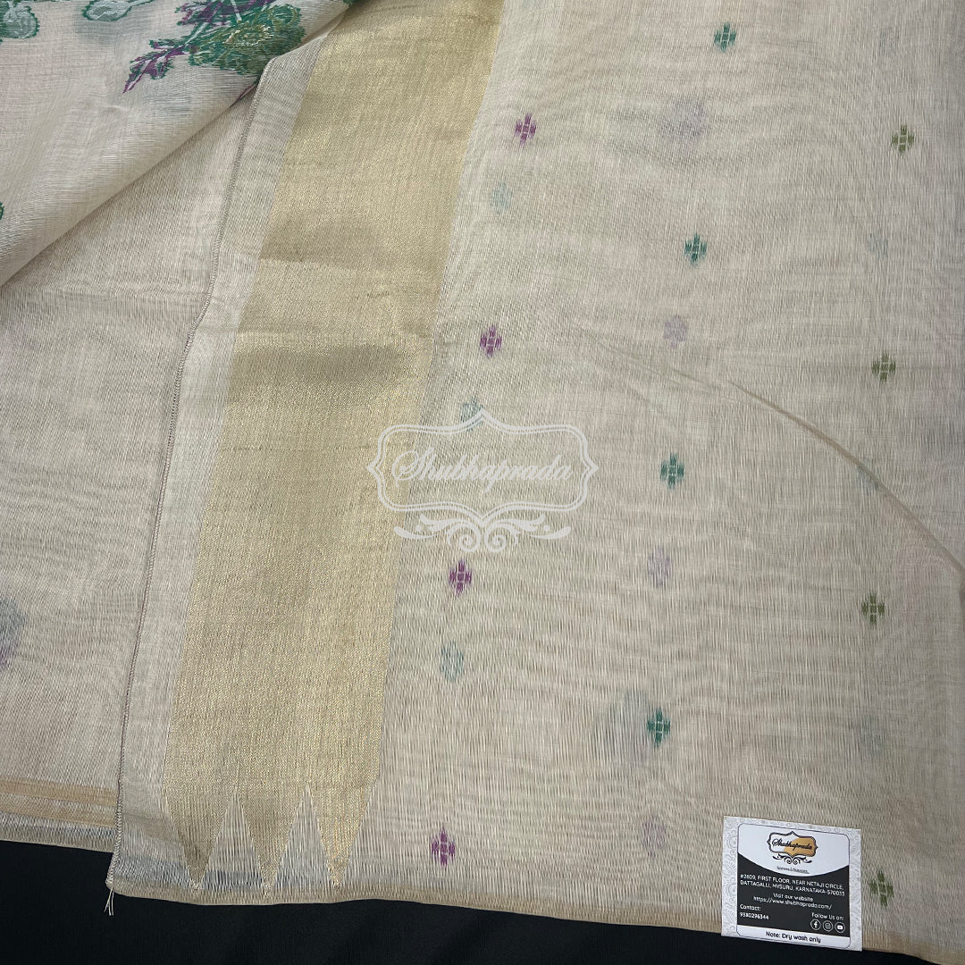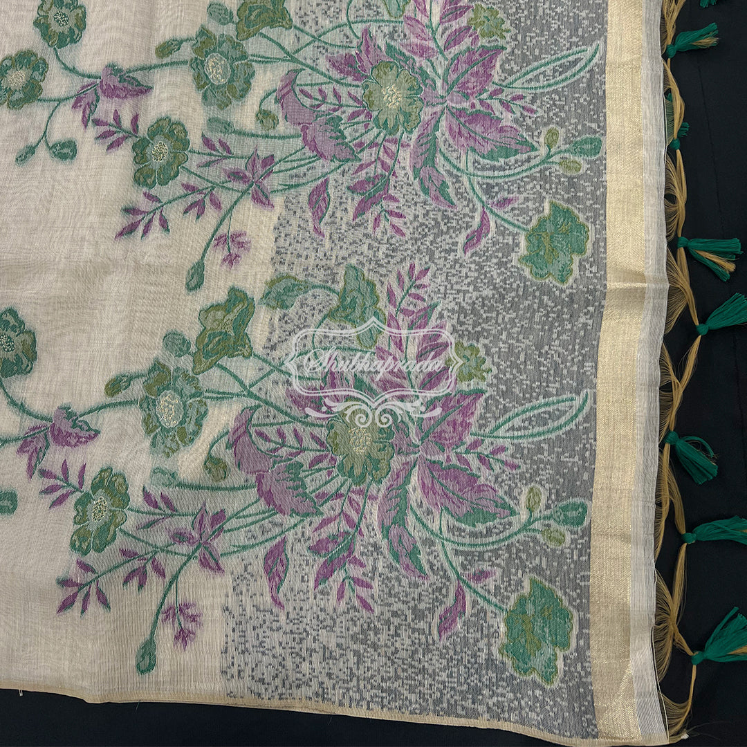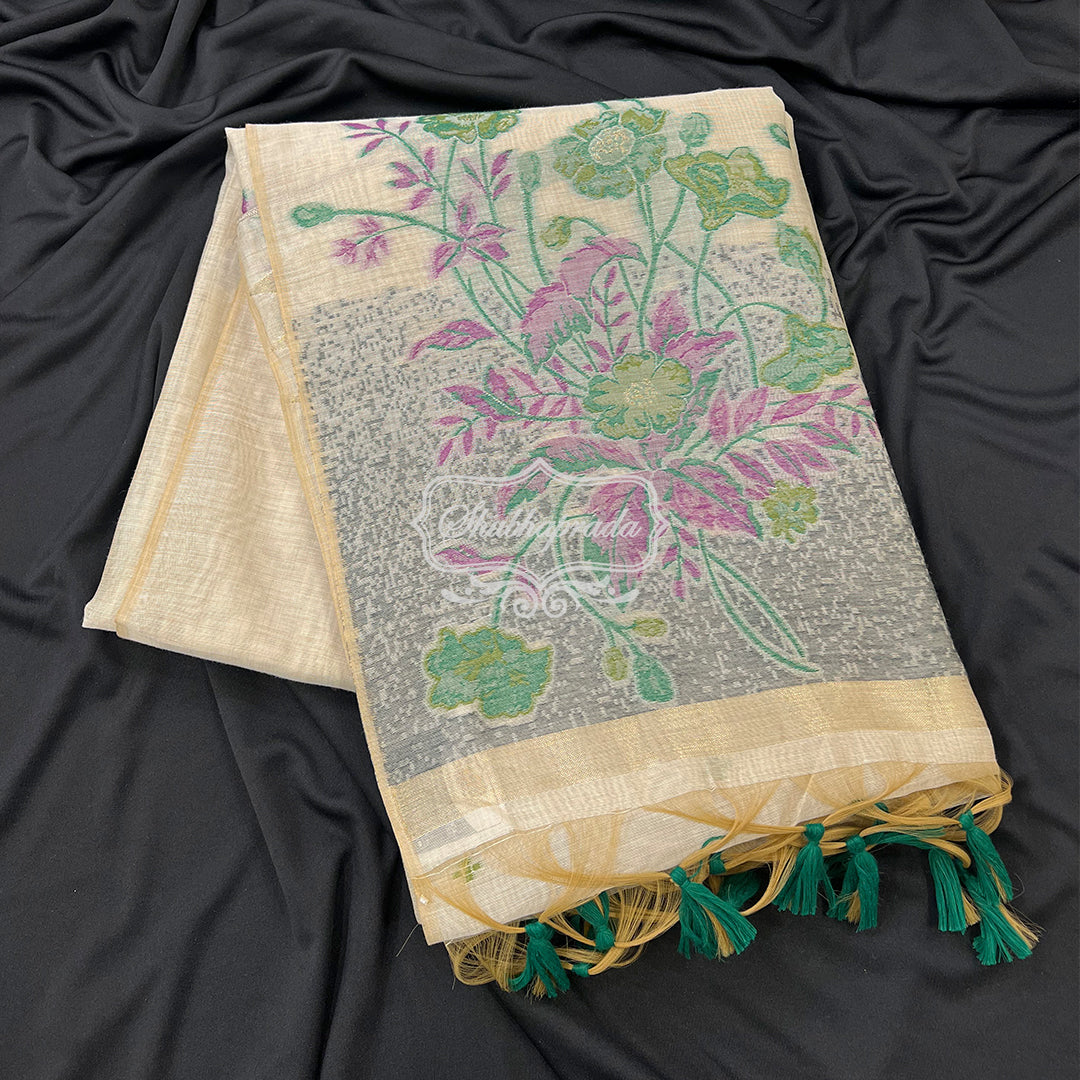 - Work : Digital Floral Print with Small Golden Weave Zar