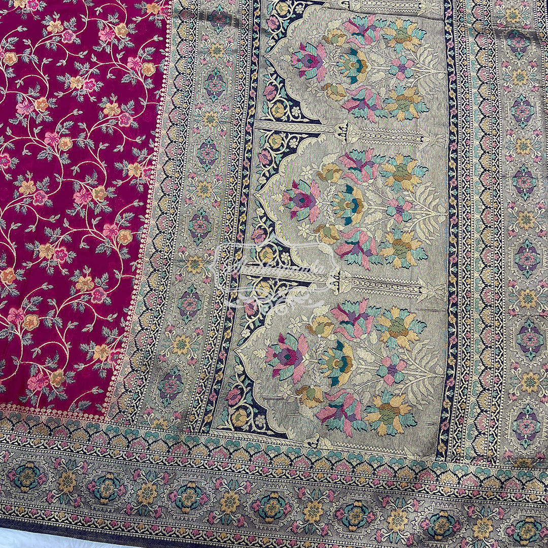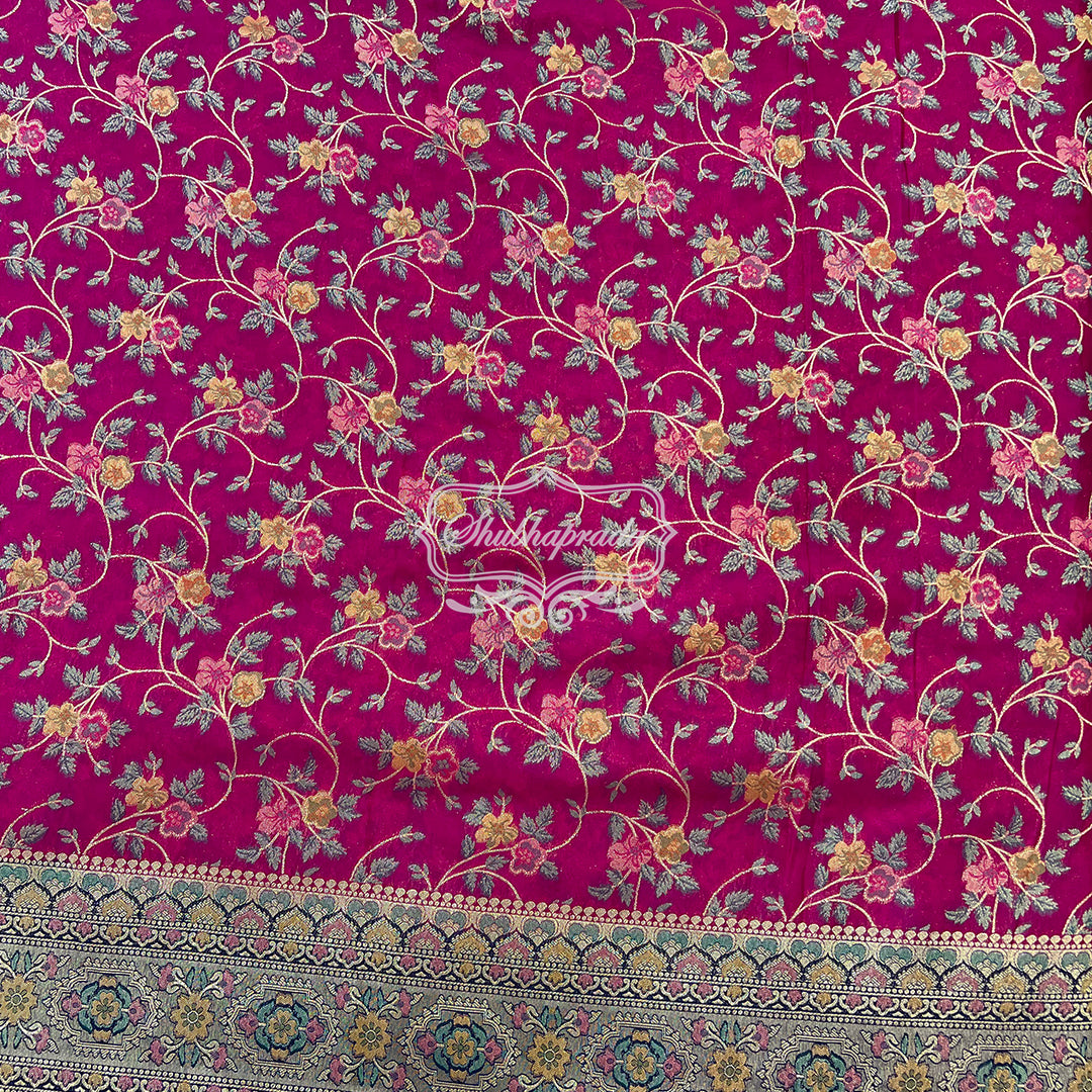 - Work : Digital Meenakari Print with Golden Weave Zari