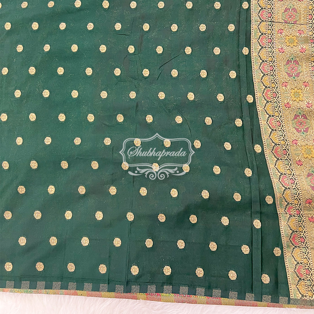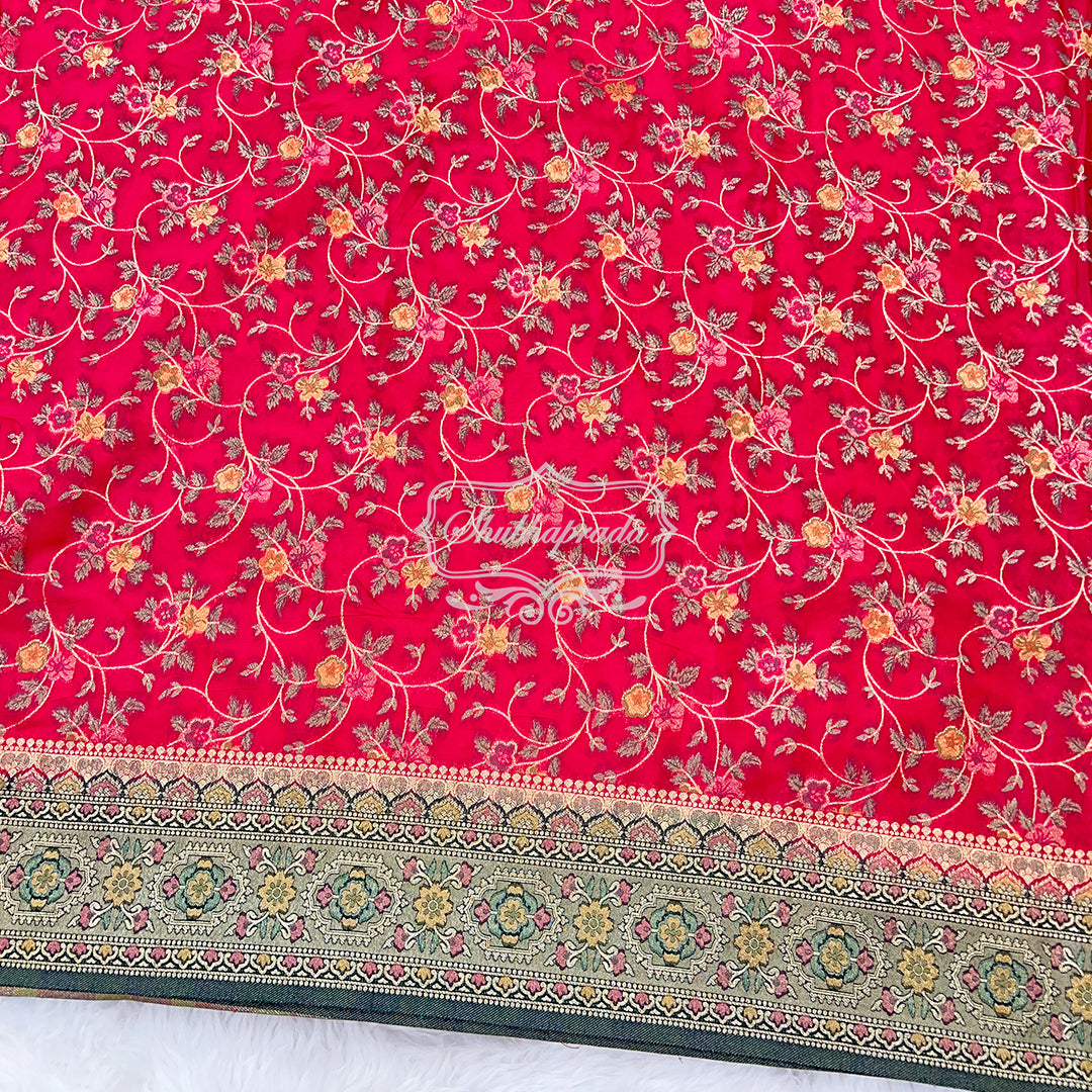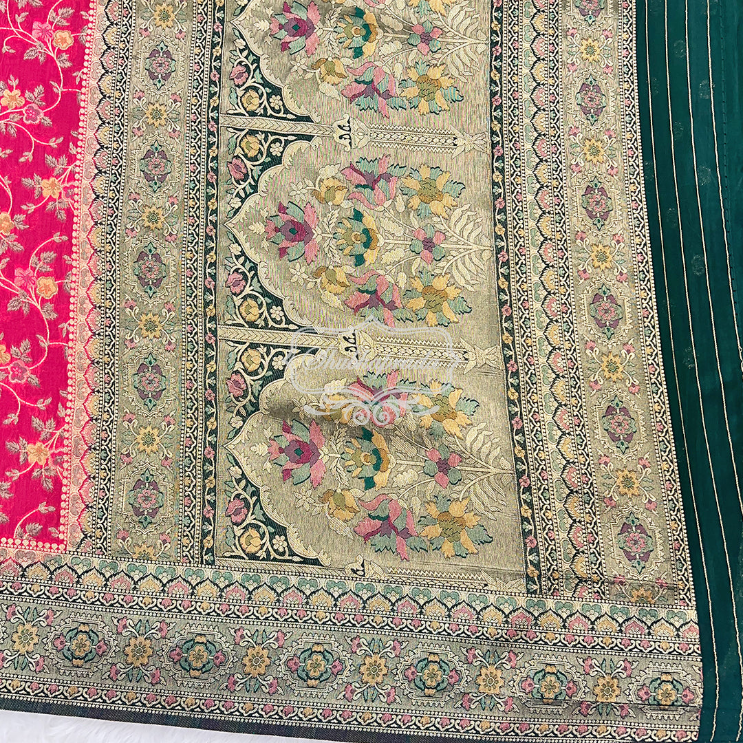 - Work : Digital Meenakari Print with Golden Weave Zari