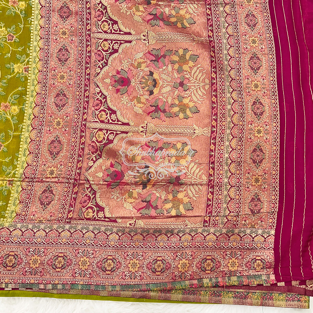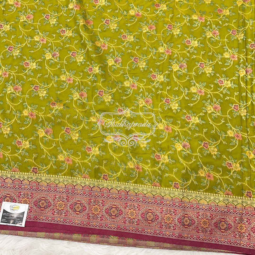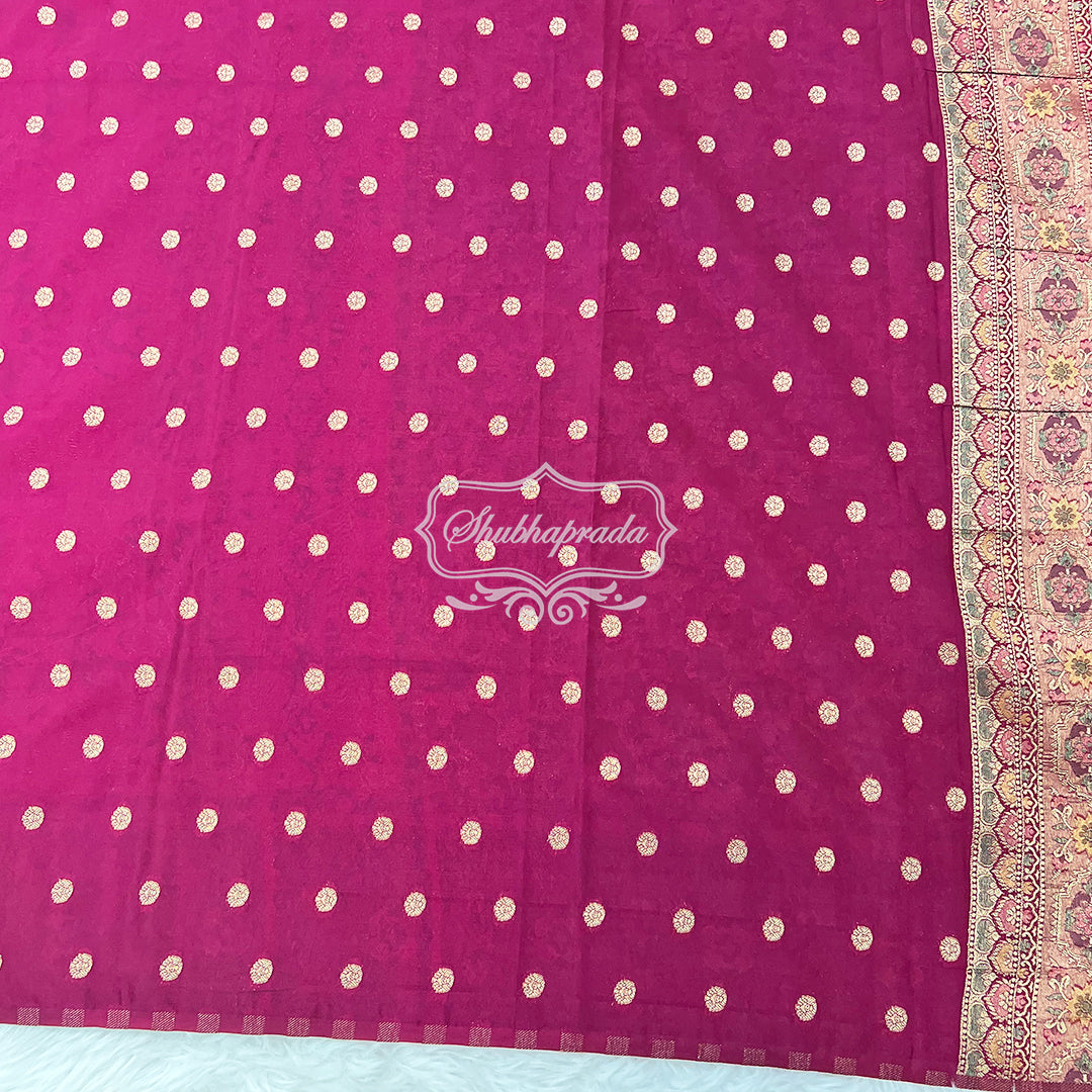 - Work : Digital Meenakari Print with Golden Weave Zari