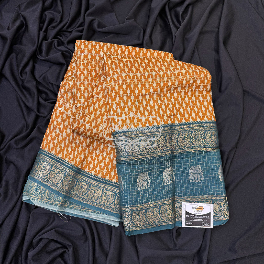 - Work : Digital Geometric Print Print with Golden Weave Zari