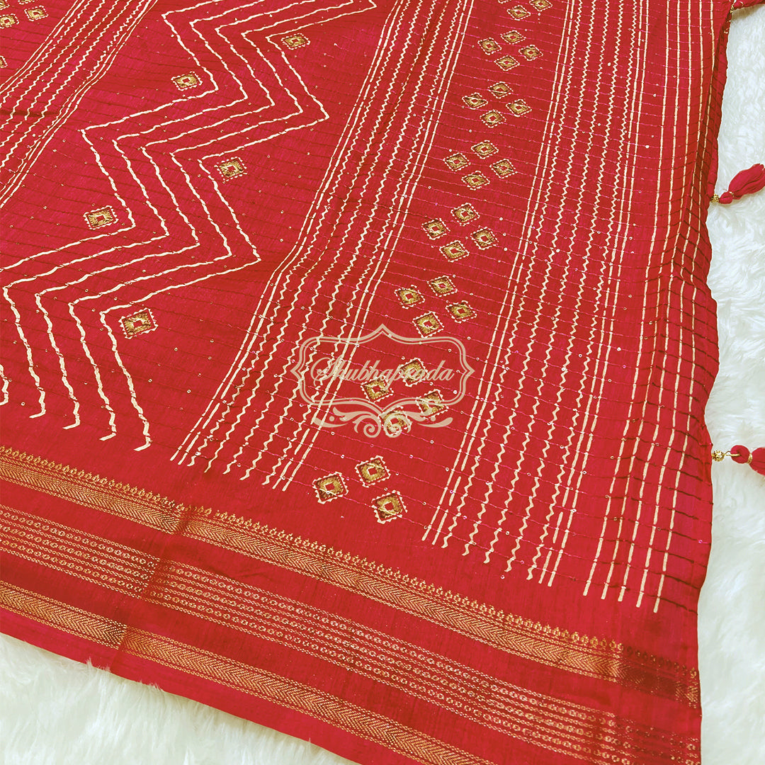 - Work : Digital Zigzag Print and Golden Weave Zari