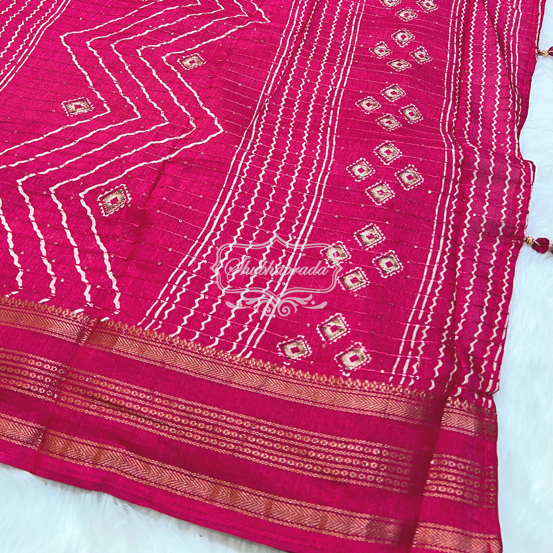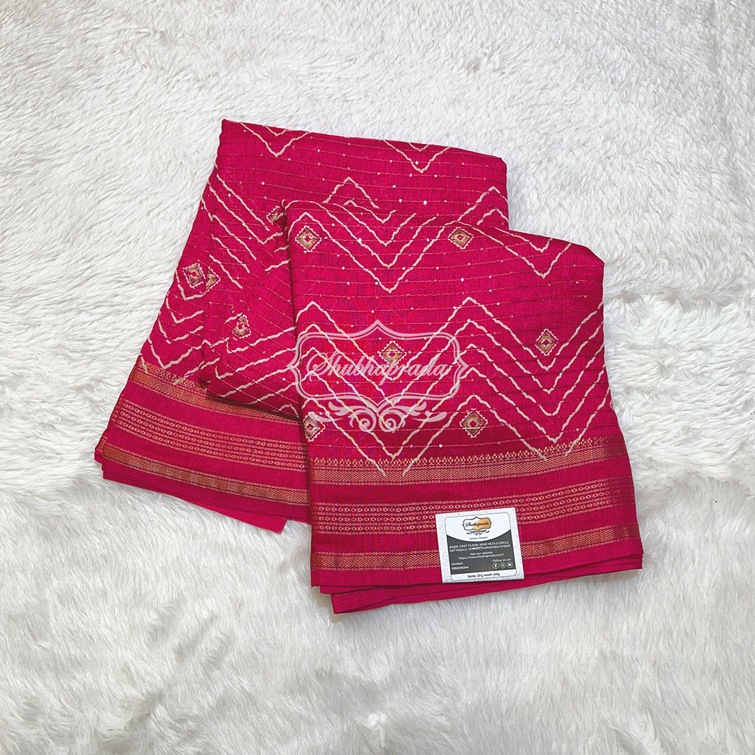 - Work : Digital Zigzag Print and Golden Weave Zari