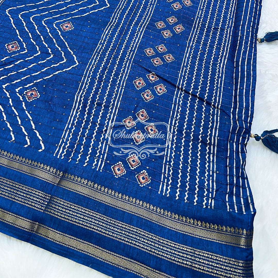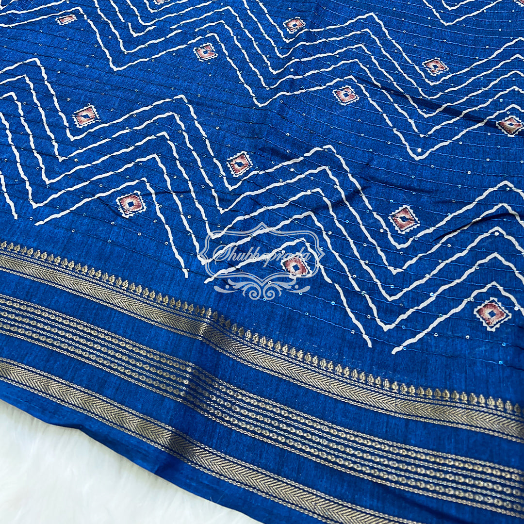 - Work : Digital Zigzag Print and Golden Weave Zari