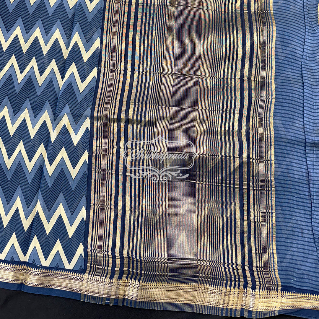 - Work : Digital Zigzag Print and Golden Weave Zari