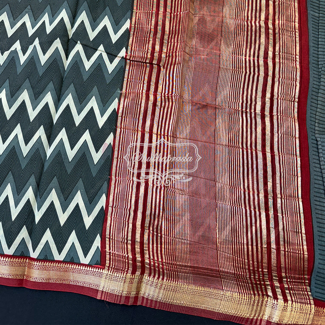 - Work : Digital Zigzag Print and Golden Weave Zari
