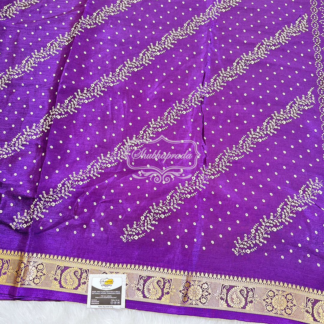 - Work : Digital Print Diagonal line & Dots with Golden Weave Zari