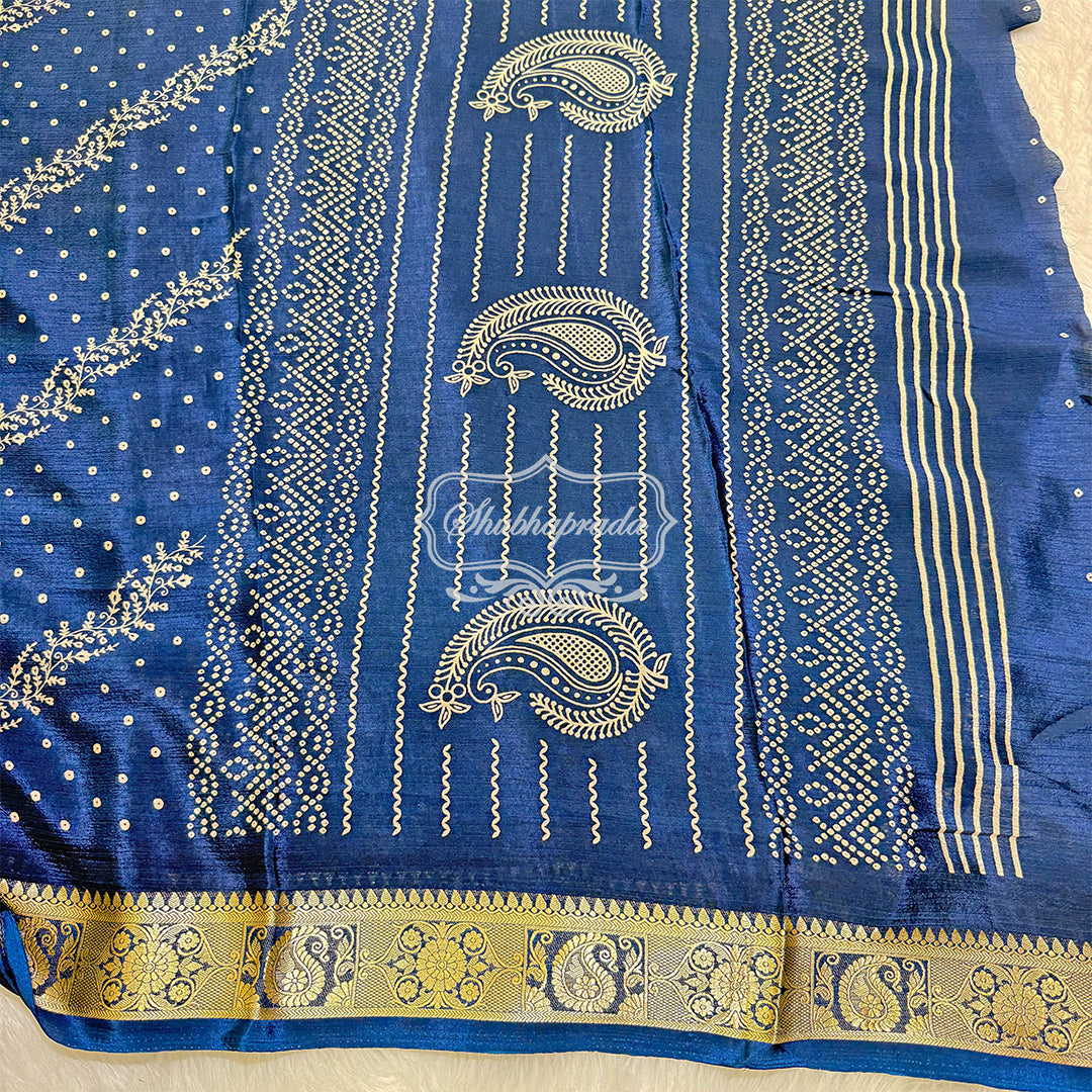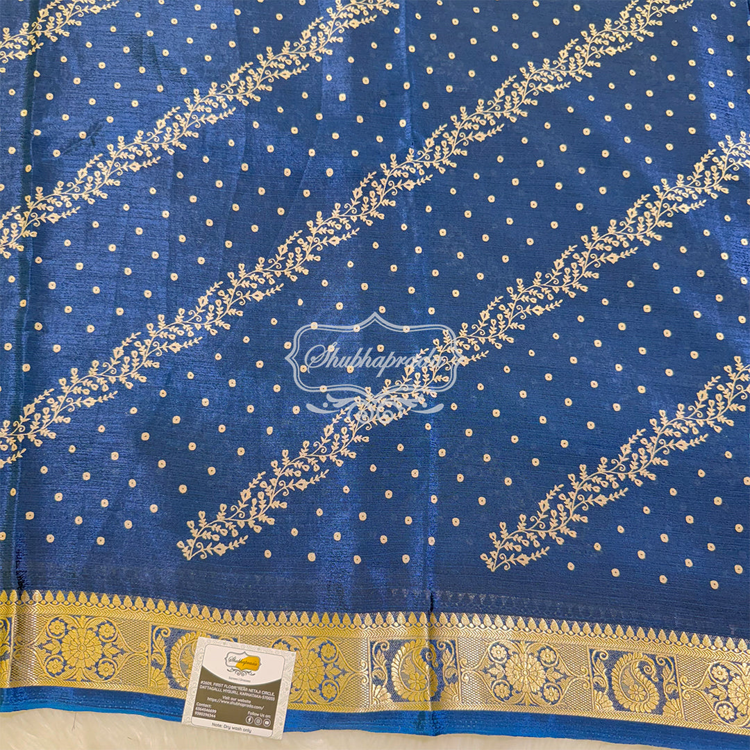 - Work : Digital Print Diagonal line & Dots with Golden Weave Zari