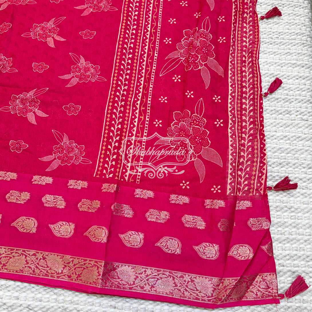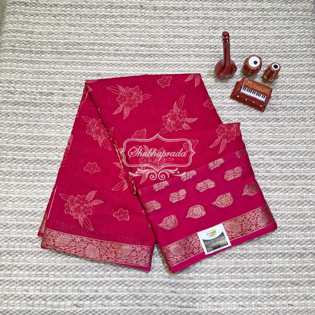 - Work : Digital Floral Print with Golden Weave Zari