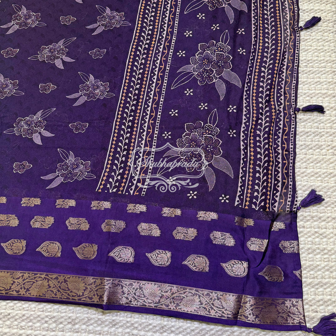 - Work : Digital Floral Print with Golden Weave Zari