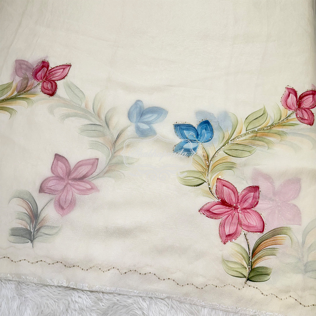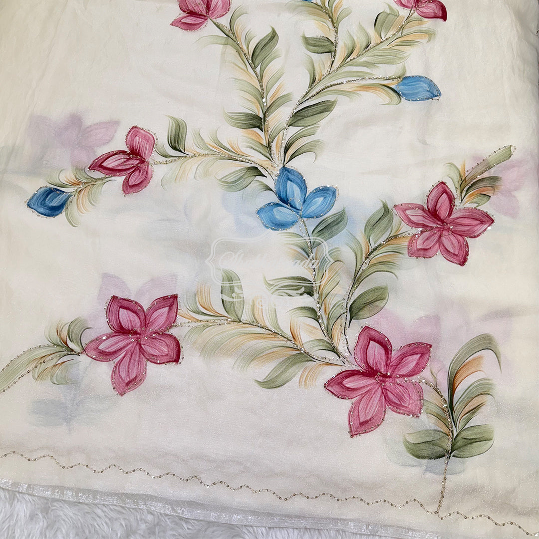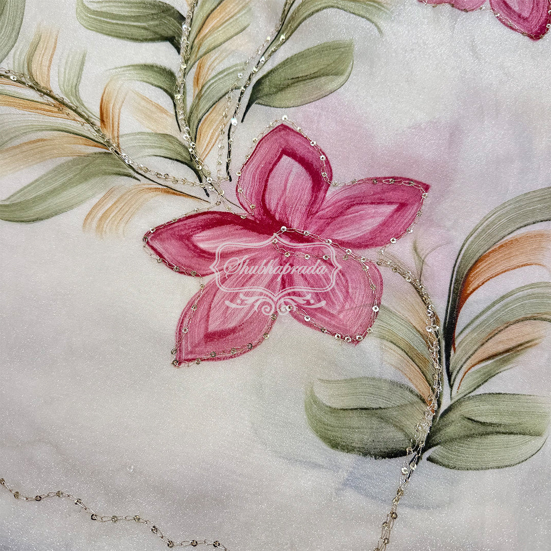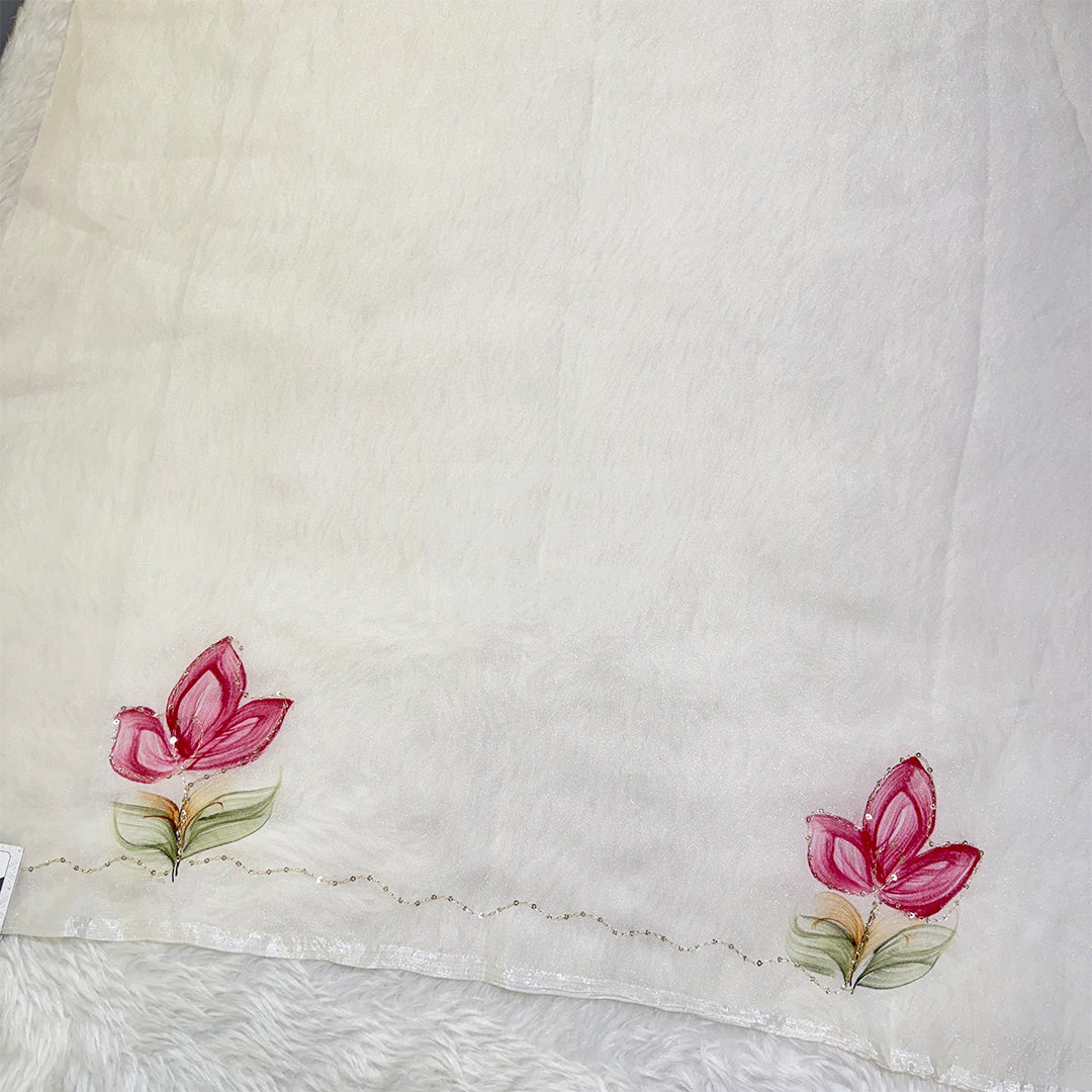 White Floral Premium Soft Organza Saree