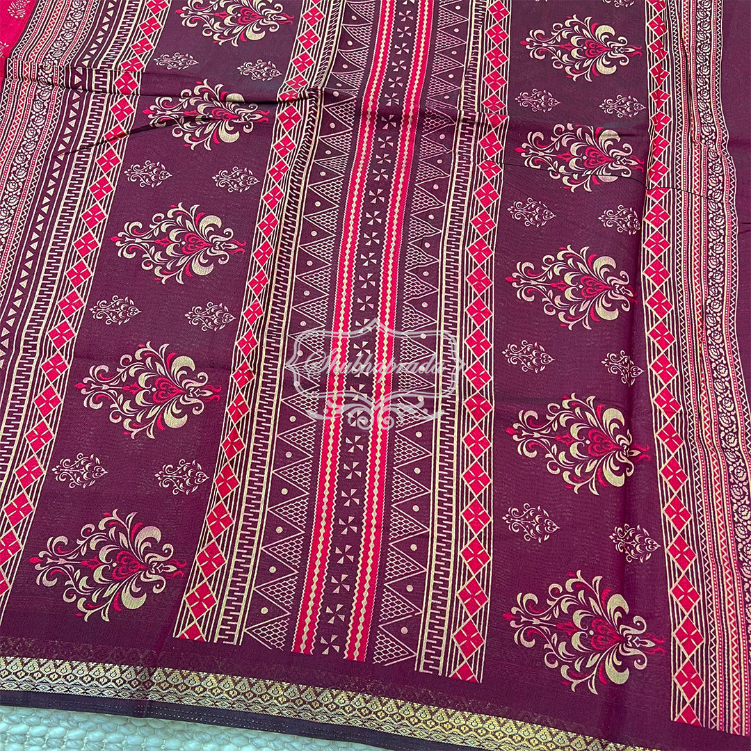 - Work : Digital Floral Print with Golden Weave Zari