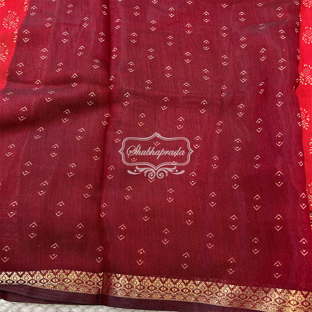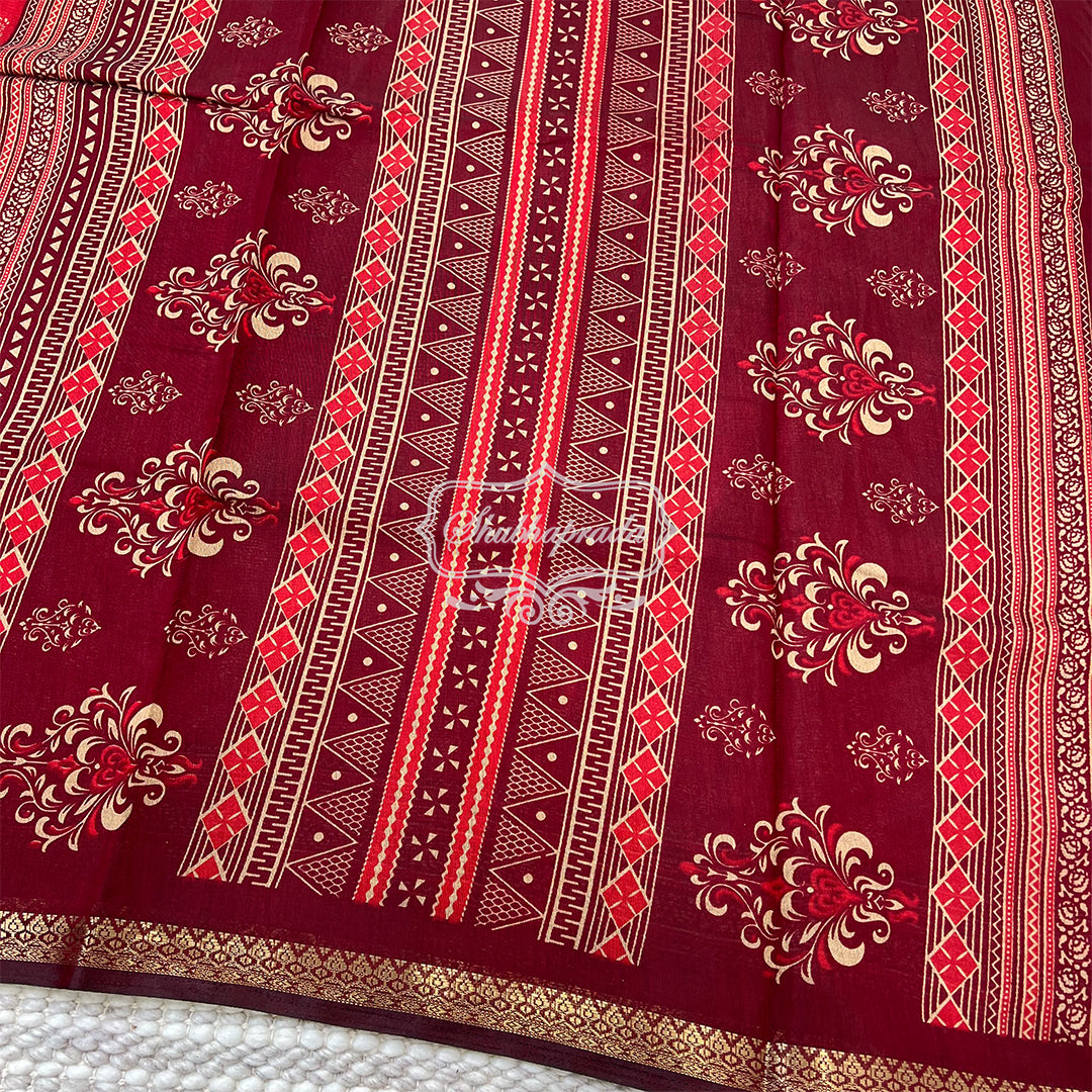 - Work : Digital Floral Print with Golden Weave Zari