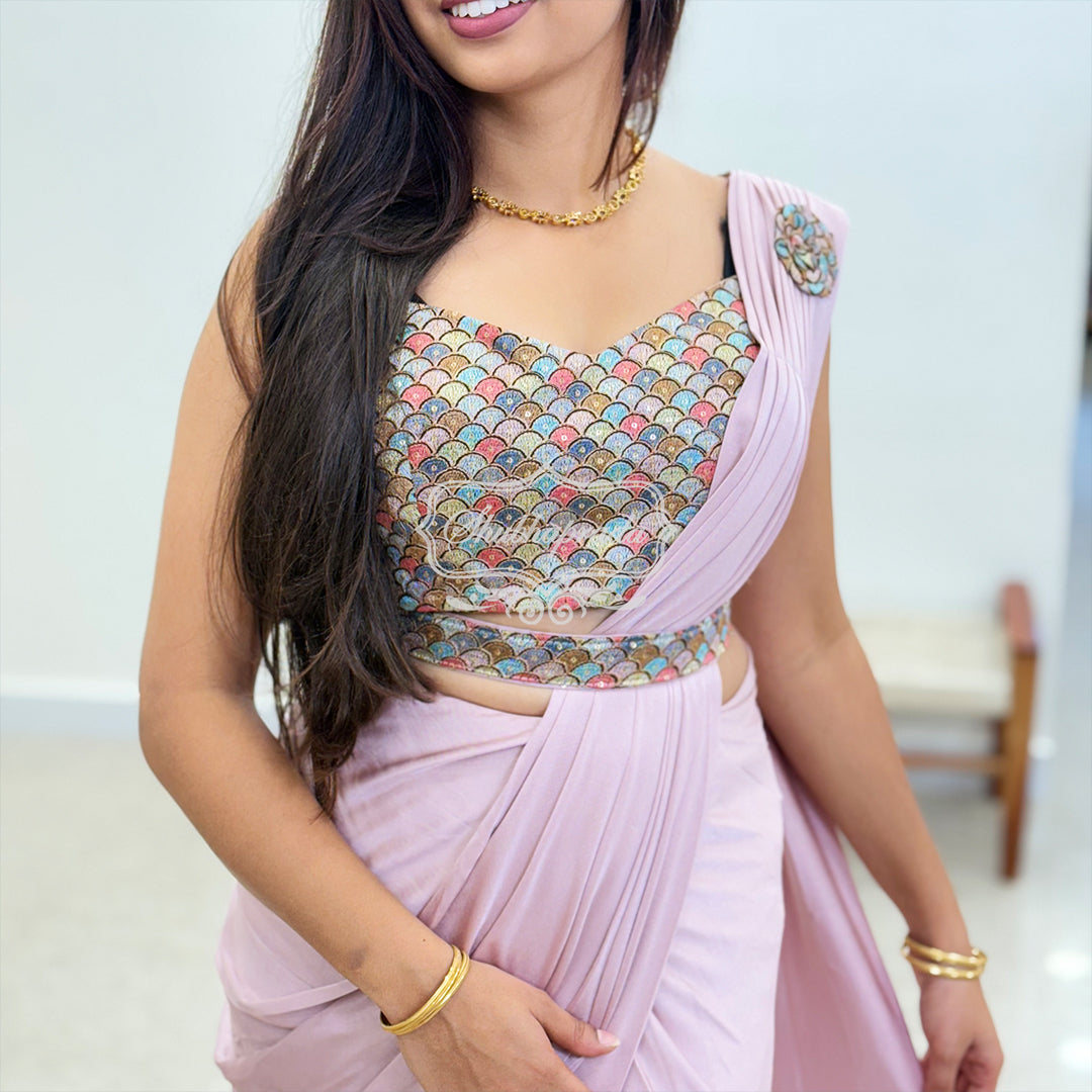 - Work : Ready to Wear Saree with Thread Work With Sequence Blouse