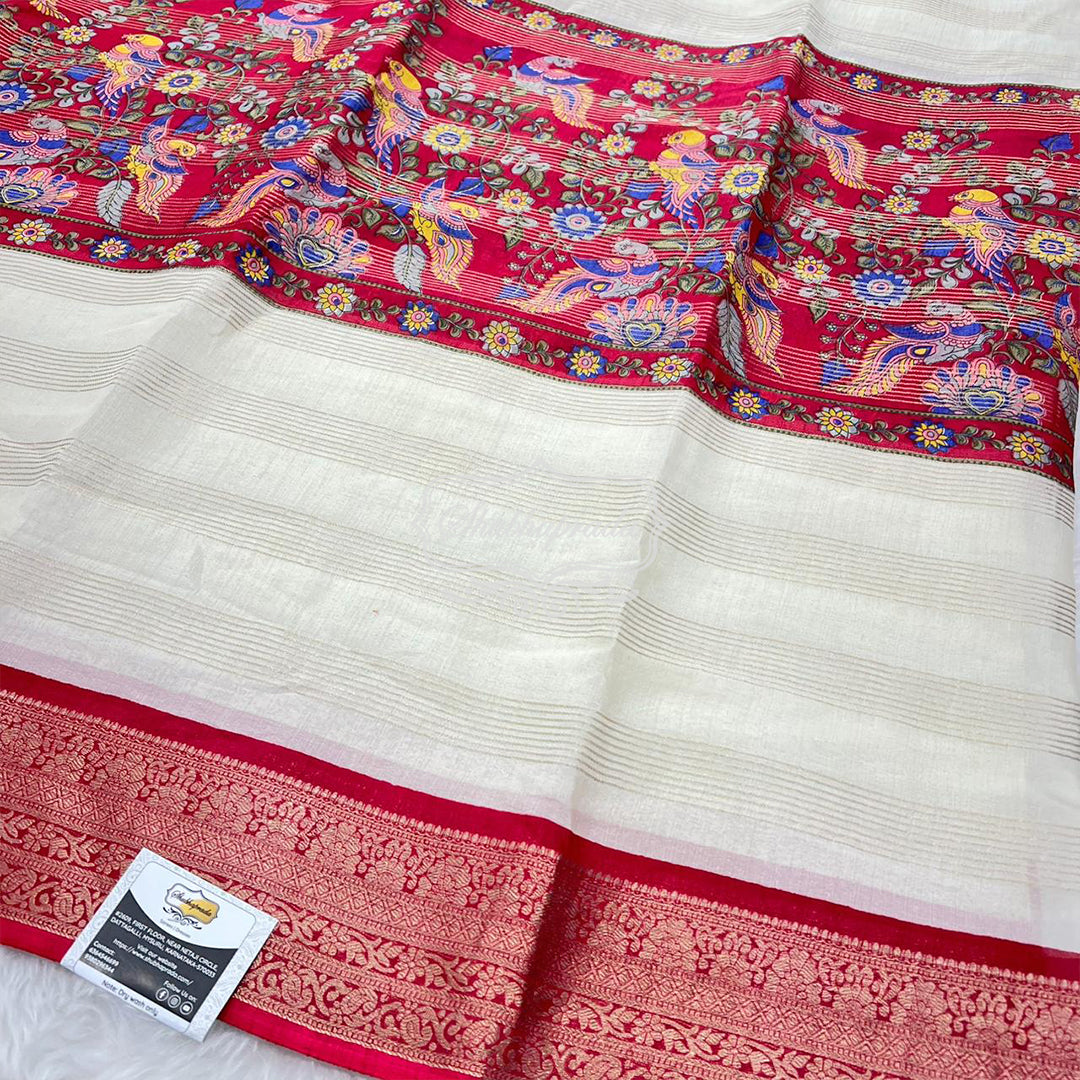 - Work : Kadambari Pallu with Digital Floral Print All Over the Body and Zari Border