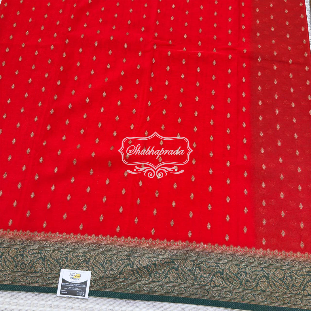 Red Premium Khaddi Georgette Buti Banarasi Saree