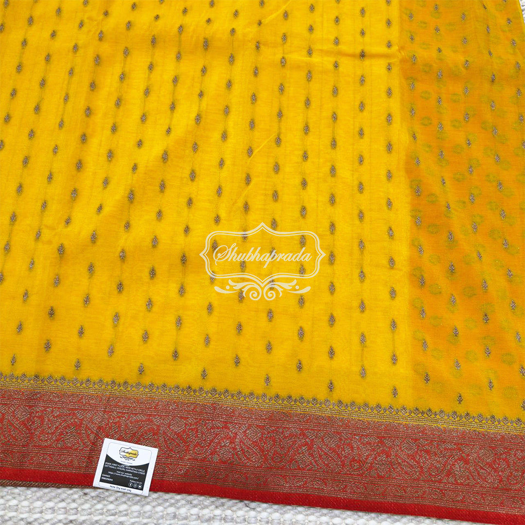 Yellow Premium Khaddi Georgette Buti Banarasi Saree