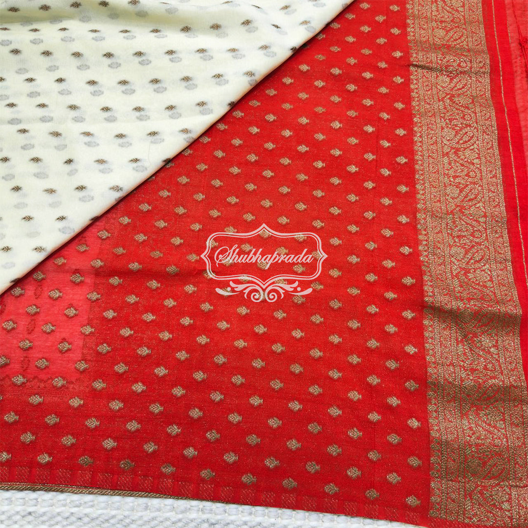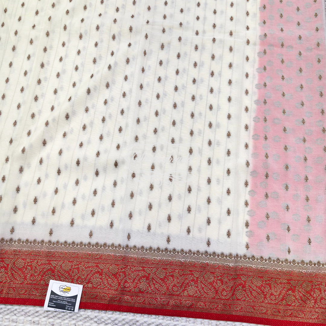 White Premium Khaddi Georgette Buti Banarasi Saree