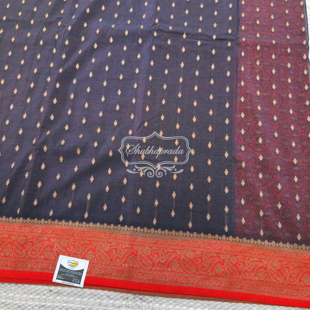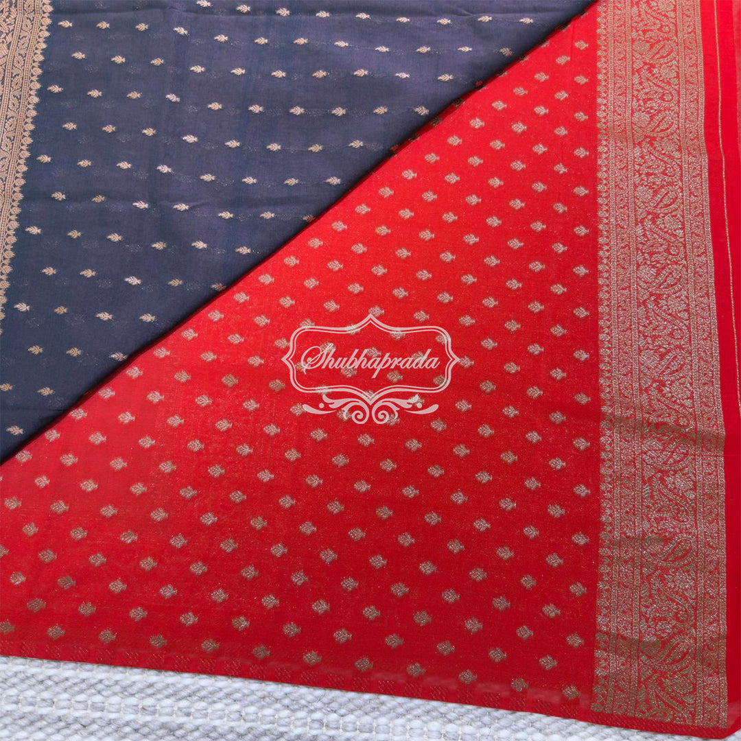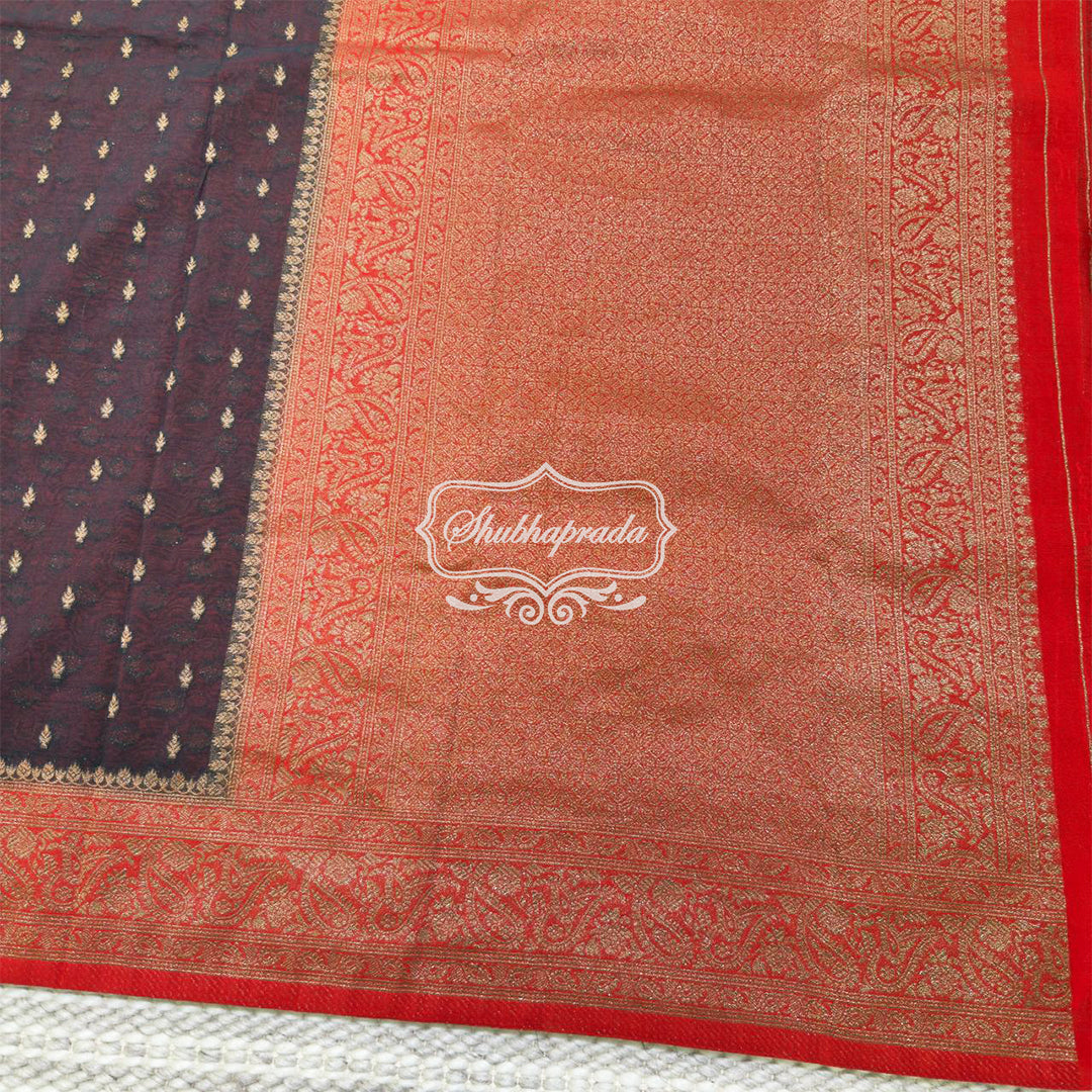 Black & Red Premium Khaddi Georgette Buti Banarasi Saree