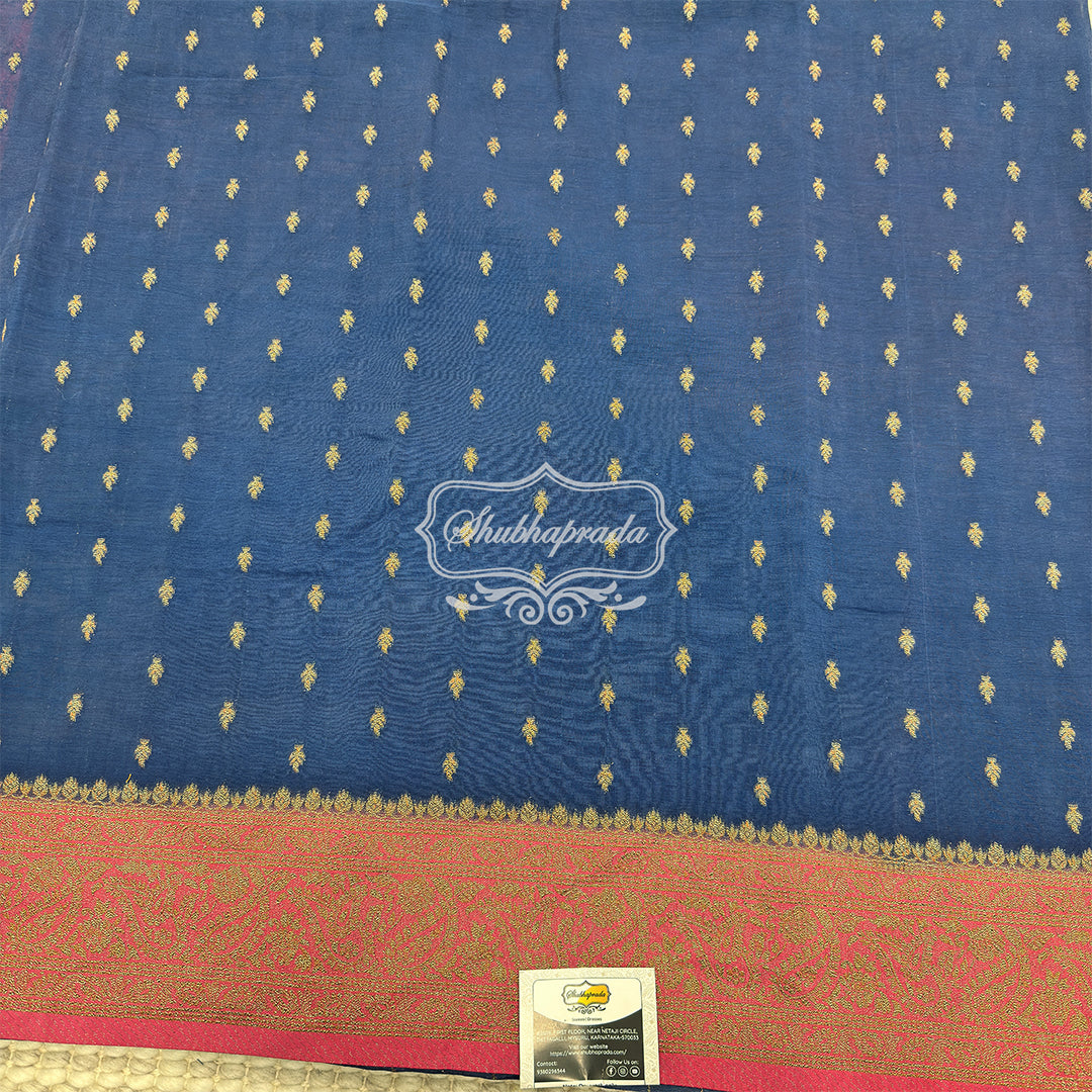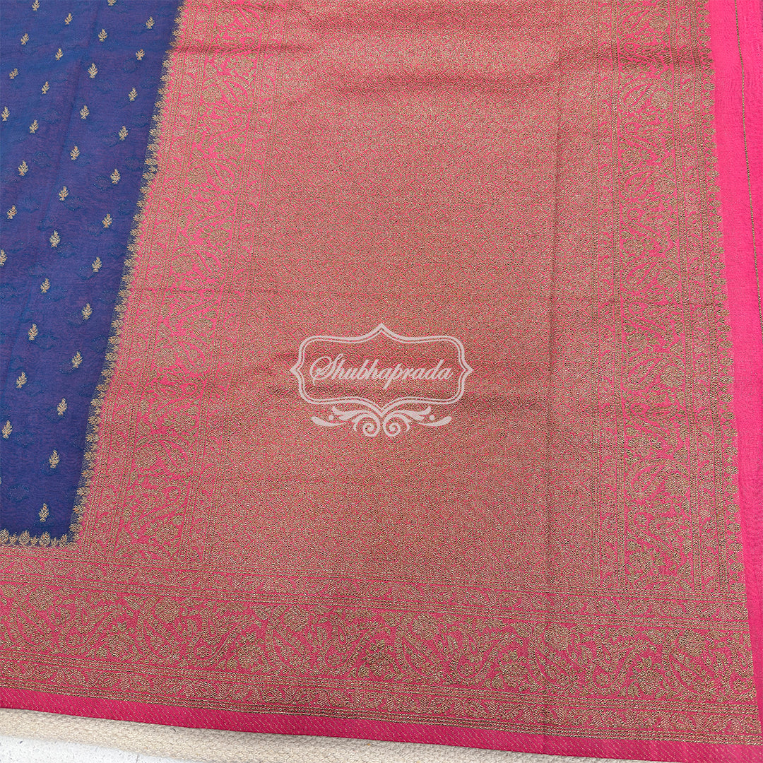 Navy Blue Premium Khaddi Georgette Buti Banarasi Saree