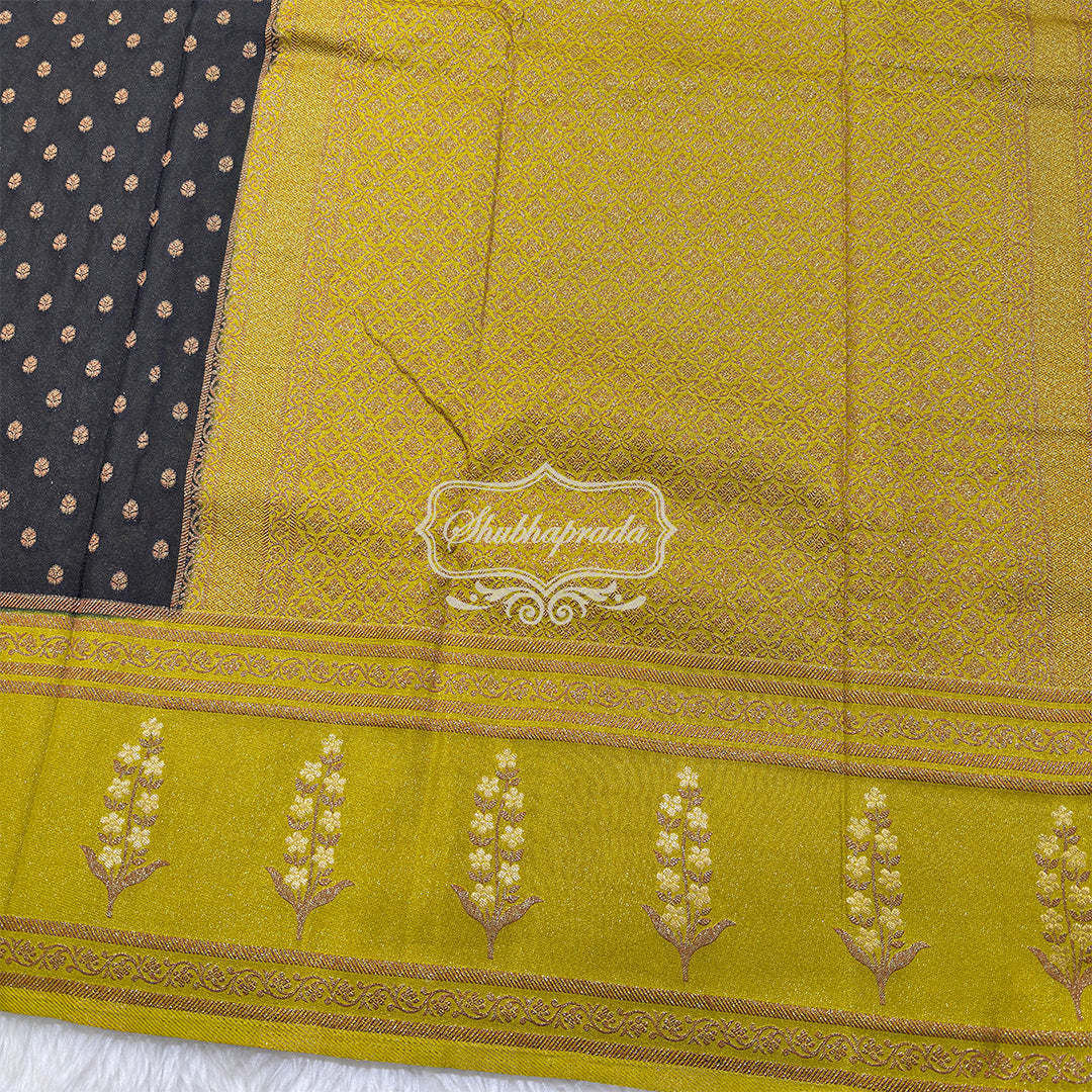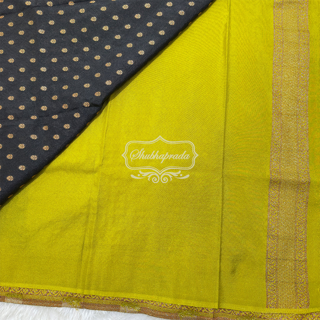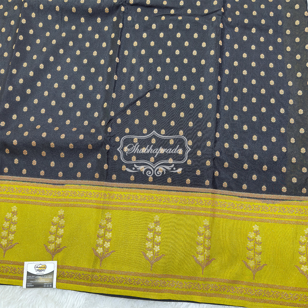 Black & Olive Rich Buti Premium Khaddi Georgette Banarasi Saree