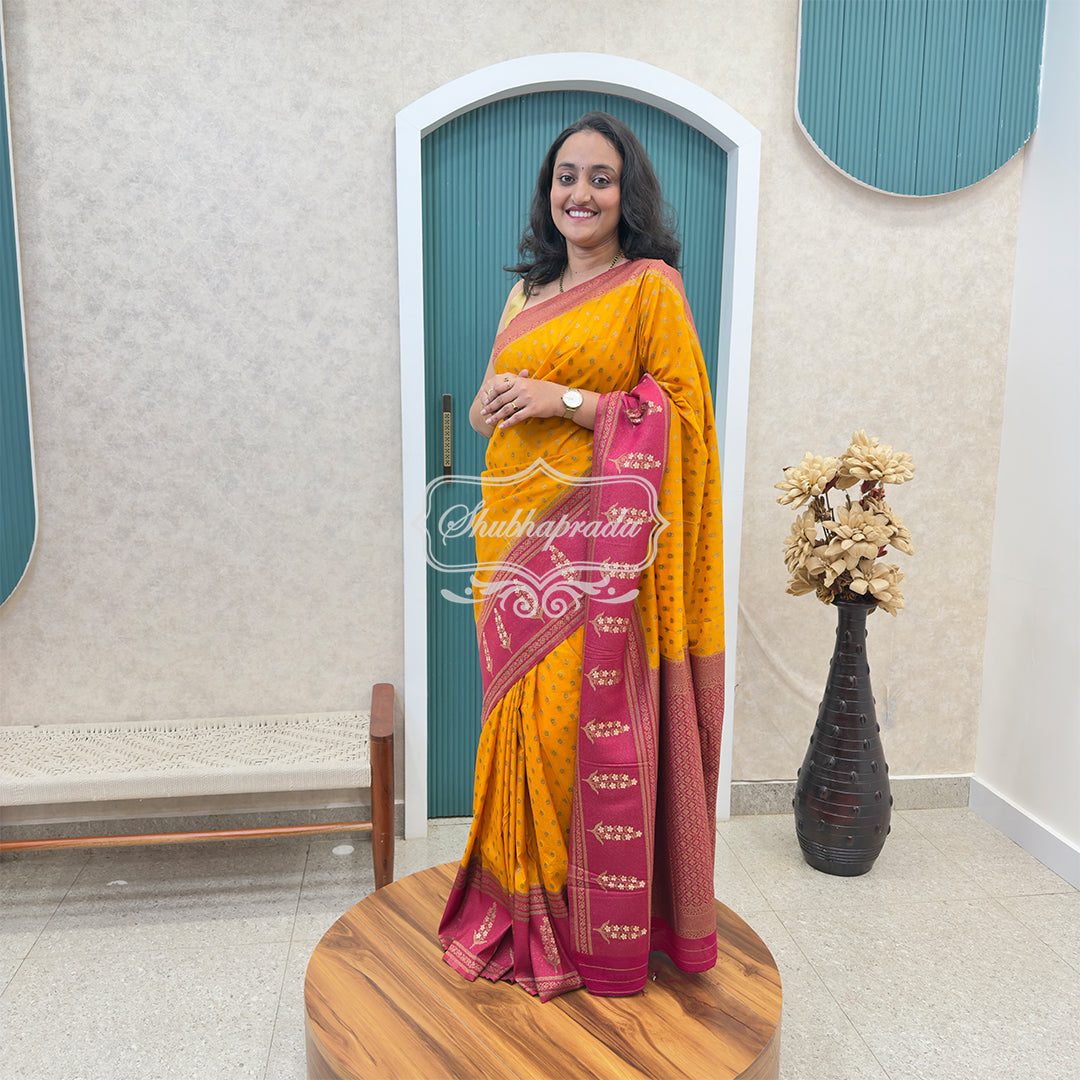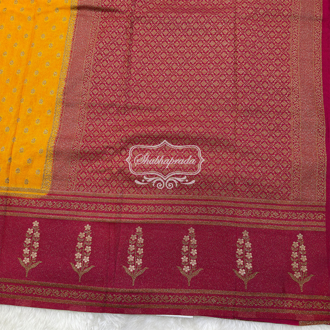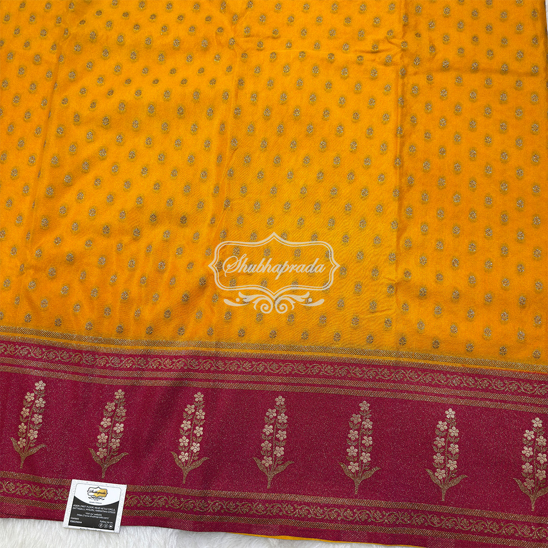 Turmeric Yellow Rich Buti Premium Khaddi Georgette Banarasi Saree