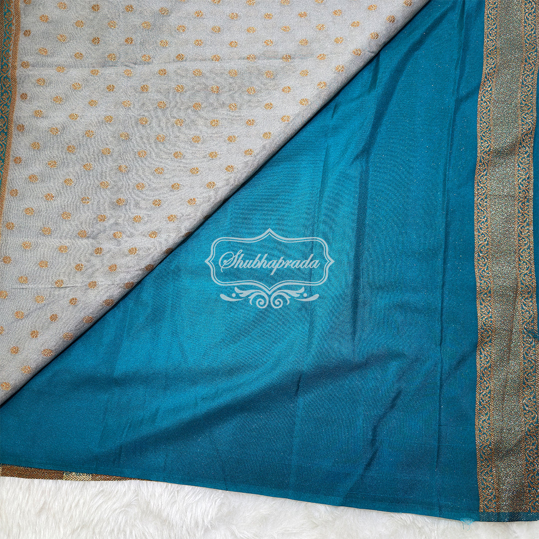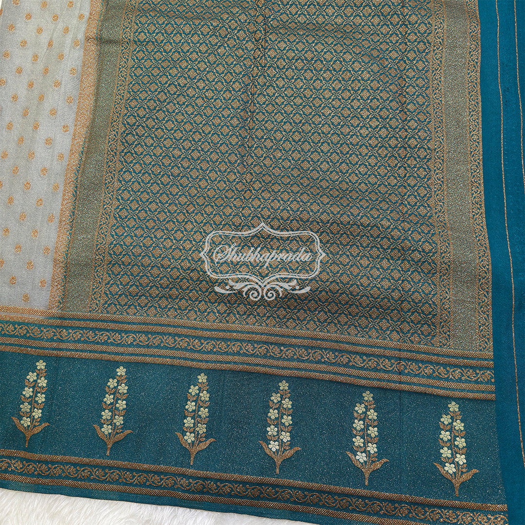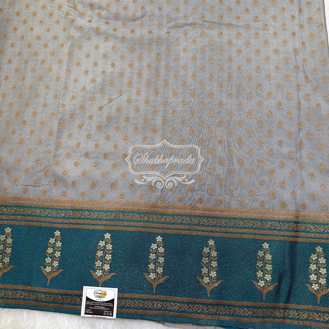 Grey Rich Buti Premium Khaddi Georgette Banarasi Saree