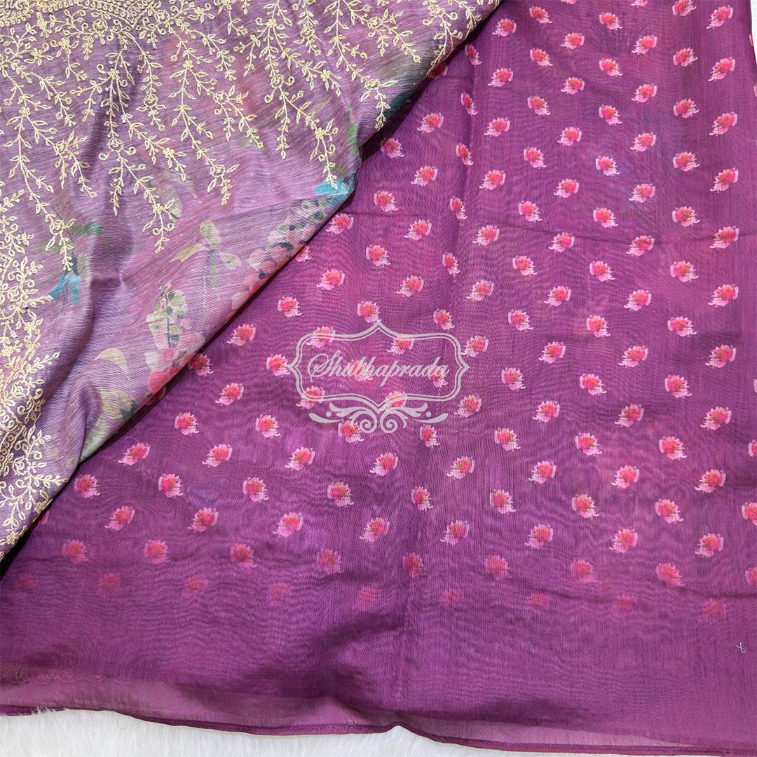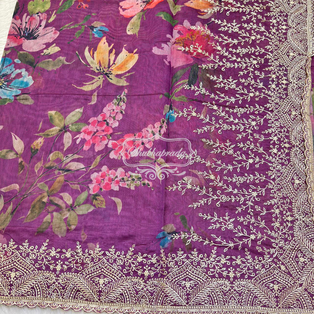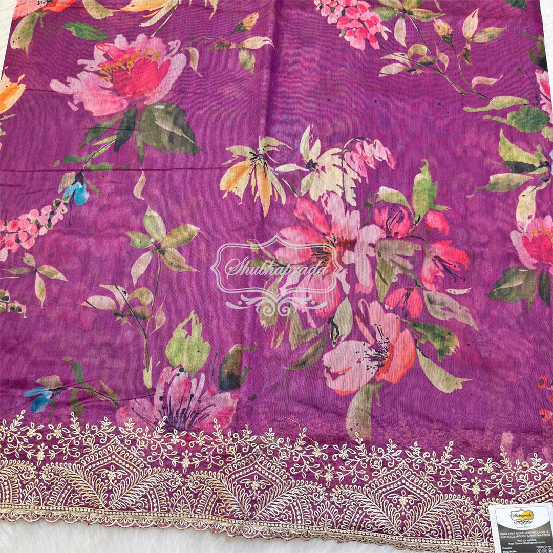 Magenta Floral Design Embroidery Border Chanderi Saree
