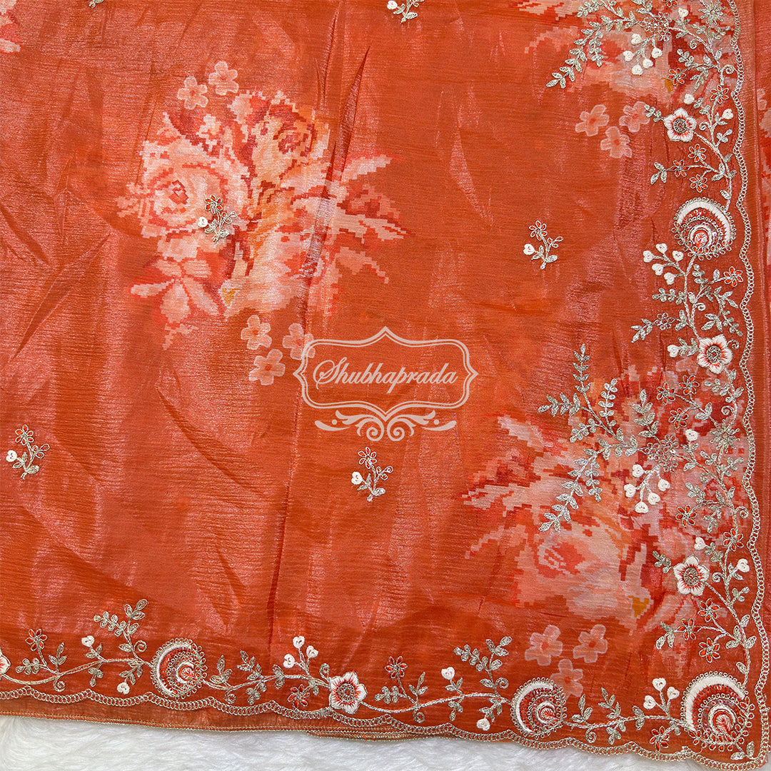 - Work : Floral Design with Sequins, Beads and Thread Work Border