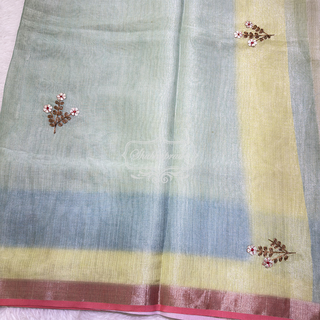 Yellow Premium Kota Tissue Floral Sequins Desing Saree