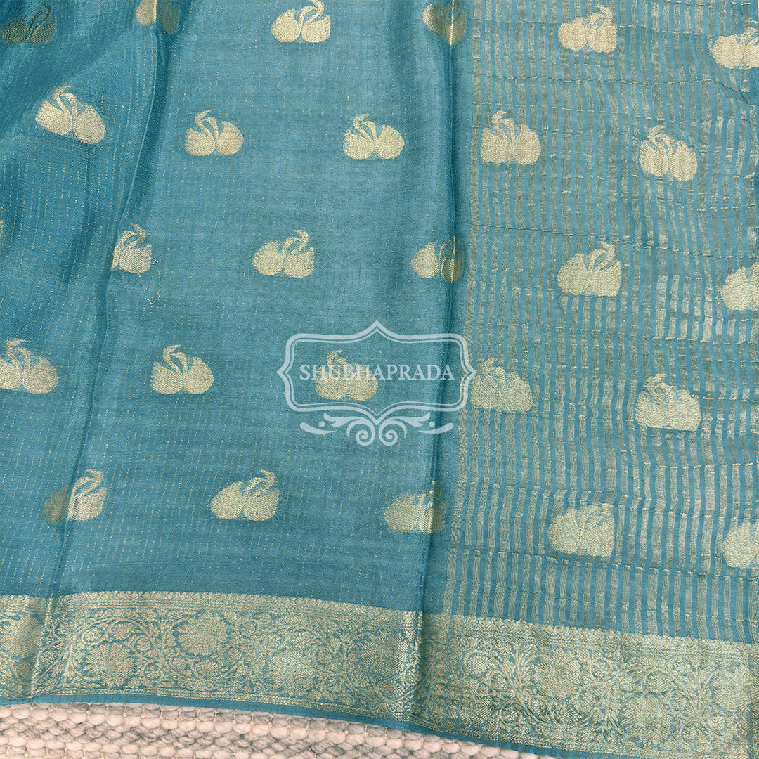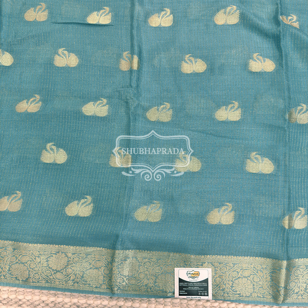 Sky Blue Premium Chiffon Saree with Golden Swan Weaving Design