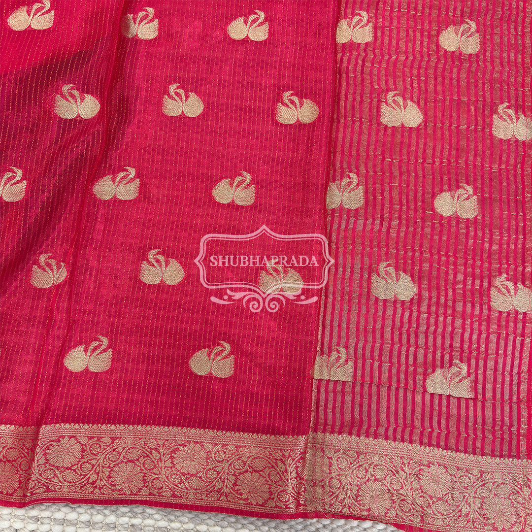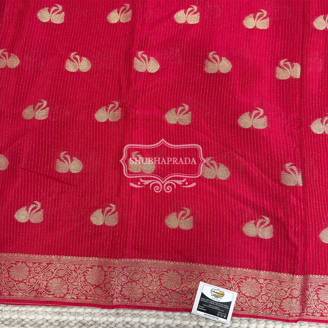 Black Premium Chiffon Saree with Golden Swan Weaving Design